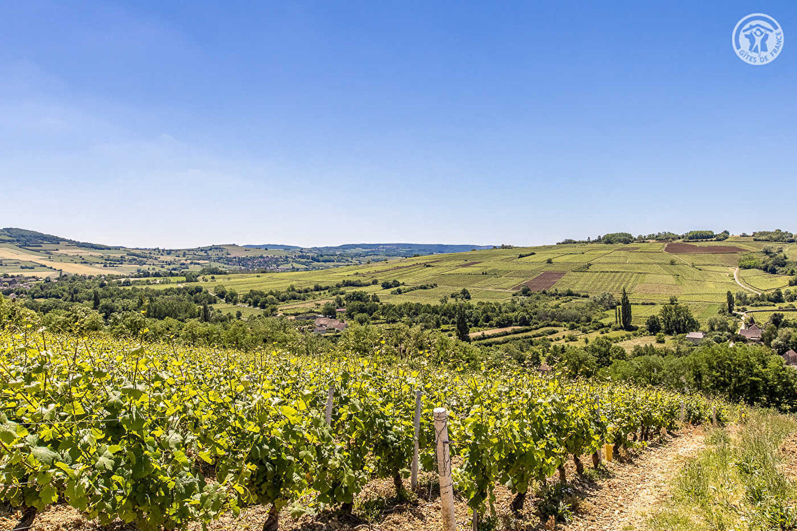 Régine & Alexandre vous accueillent au sein d'une authentique demeure de pays du 19ème siècle (ancienne maison de vignerons liée jadis à un petit domaine viticole), qu'ils ont soigneusement restauré avec style & goût, nichée au calme en bordure d'une petite ruelle en impasse, au cœur d'un paisible pittoresque village viticole des Hautes Côtes de Beaune chargé d'histoire, fondé au XIIIème par les templiers de l'Ordre Hospitalier de Saint-Jean de Jérusalem. Blotti au creux de la bucolique vallée de la Cozanne, au pied de trois monts "belvédères" culminant tous à plus de 500m (dont la "Montagne des Trois Croix", espace préservé classé "parc naturel" offrant un exceptionnel panorama à 360°), non loin des réputés vignobles des Maranges & du Couchois, ce littéral bourg "de carte postale" dispose d'un sublime cadre paysagé vallonné, cerclé de somptueux coteaux de vignes, prairies & collines boisées. Spacieux gîte de très bon confort. Équipement ultra complet de qualité. Chaleureux cachet campagnard aux accents contemporains sublimé par les riches traces du passé (conservations des anciens murs en pierre, poutres, manteau de cheminée…). Vaste chambre lumineuse & moelleuse lovée sous les toits. Beaucoup de charme & caractère. Ambiance cosy & cocooning. Spacieuse terrasse exposée & ombragée. Agréable espace privatif réservé côté jardin des propriétaires (soigneusement engazonné, végétalisé & fleuri). Belle vue dégagée sur les vignobles et le village.