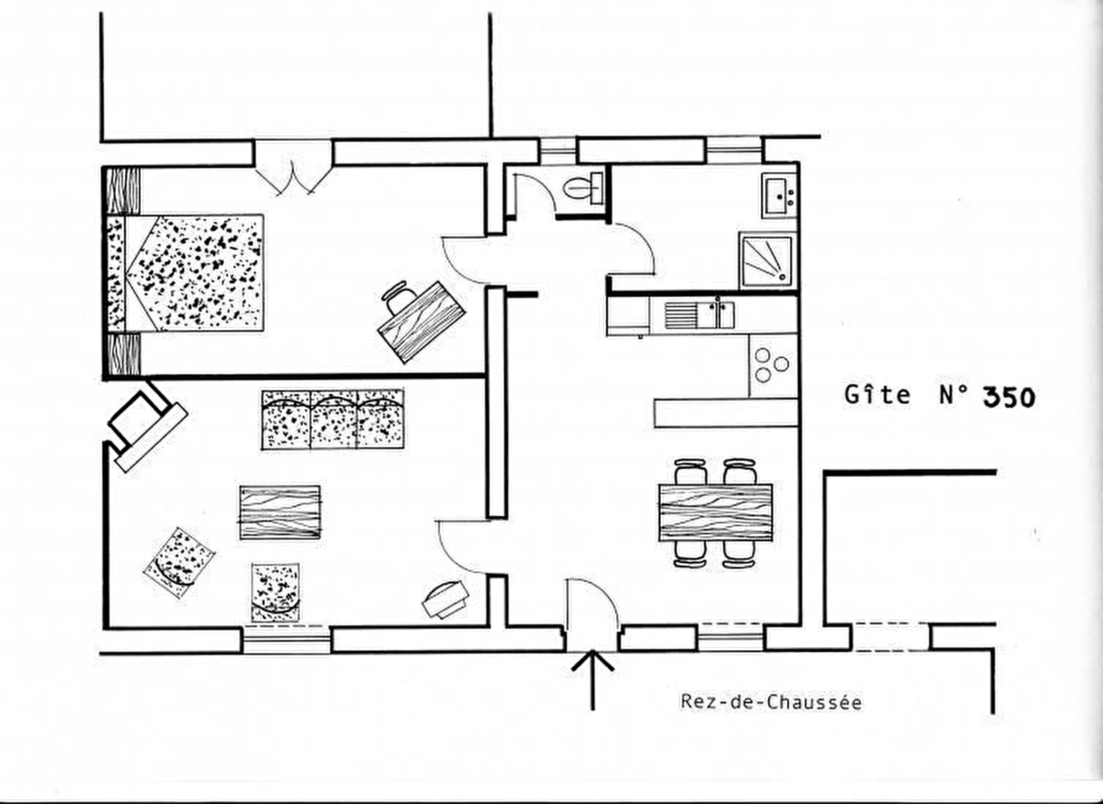 Maison indépendante de plain pied. Cuisine avec coin repas, salon. 1 chambre (1 lit 2 personnes, 1 lit bébé), salle d'eau, WC indépendant.