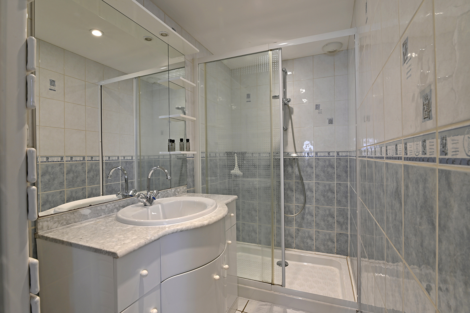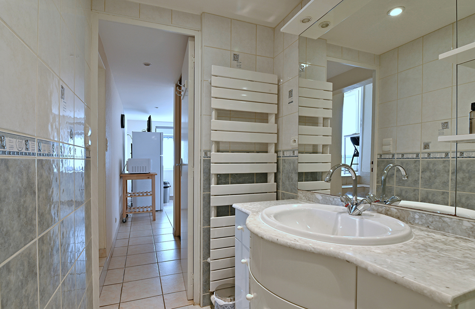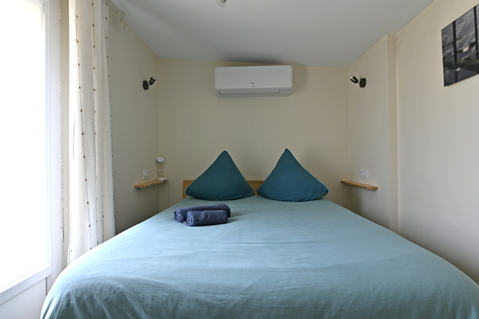 Au rez de chaussée : une salle de bain avec WC séparé. Une deuxième chambre avec un lit double.