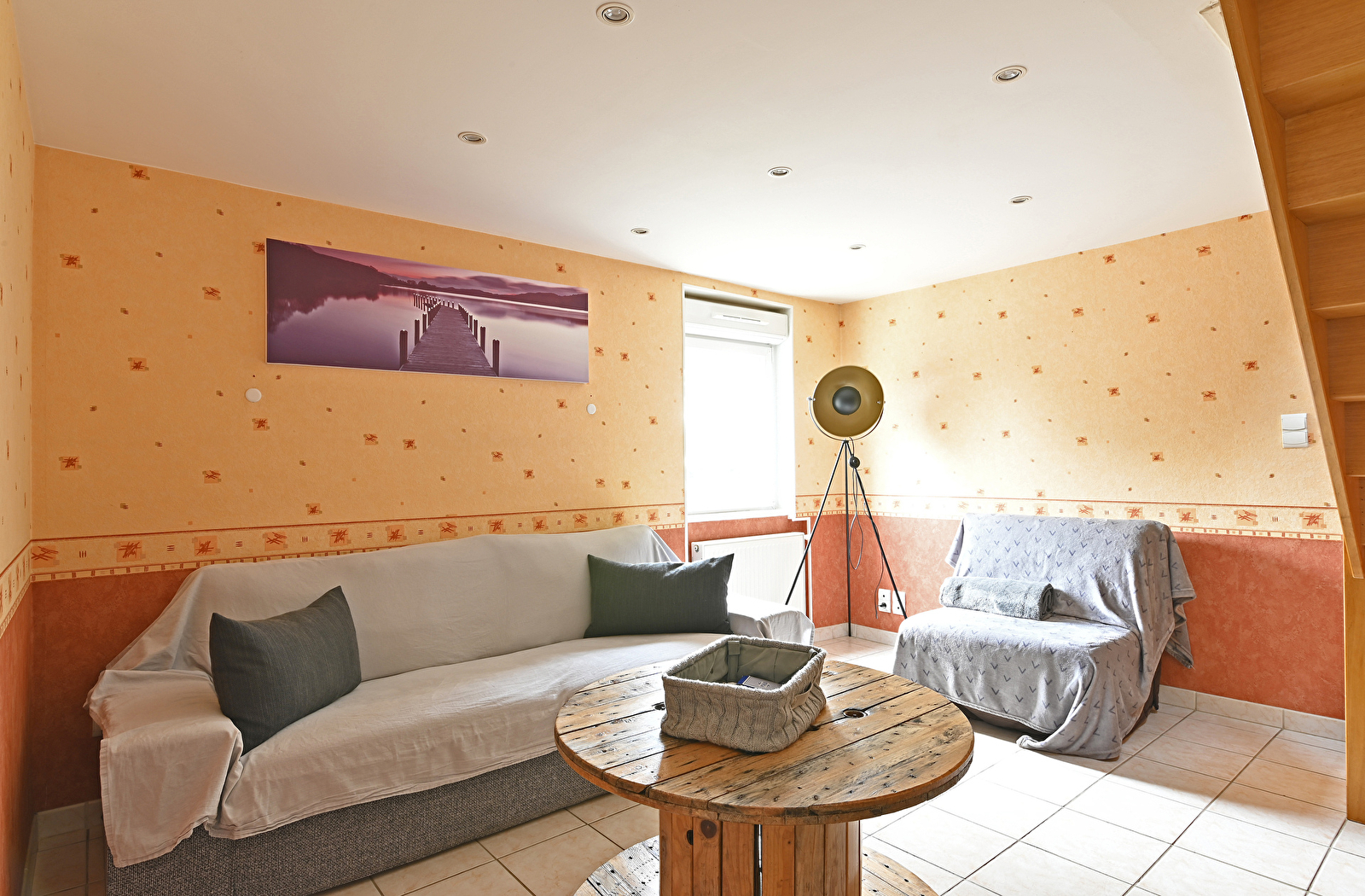 Petite maison individuelle avec entrée et véranda. Cuisine équipée (plaques 4 feux gaz, frigo, micro- ondes, appareil à raclette, cafetière, bouilloire, lave-linge), salon avec canapé et TV, wifi.