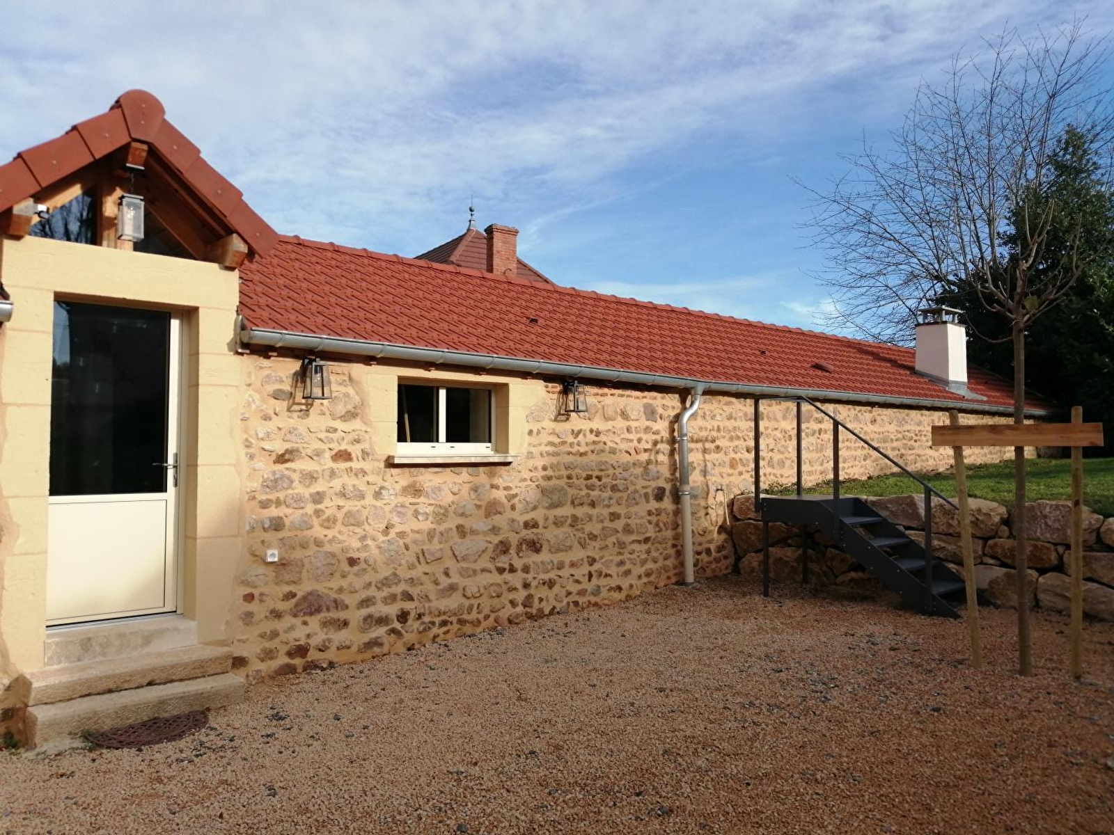 Noëlle & Axel (passionné d‘histoire, auteur d'un ouvrage local), vous ouvrent les portes d'une ravissante authentique dépendance agricole datant du début XIXe, soigneusement restaurée dans les règles de l'art, nichée en bordure de ruelle face à la très élégante église romane du bourg édifiée au XIIe. Calme & tranquillité, blotti en plein cœur d'un paisible & pittoresque petit village parfaitement sauvegardé de la douce compagne clunisoise (classée & protégé en "Zone Natura 2000" pour ses richesses faunistiques & floristiques) perché à flanc de colline au creux d'un magnifique écrin paysagé vallonné de prairies bocagères parsemées de bucoliques petites rivières & étangs, sous les crêtes boisées de la vaste forêt domaniale des Trois Monts (littéral "poumon vert" du territoire à parcourir lors de reposantes balades à pied ou VTT). Gîte de très bon confort lové "sous les toits" (beaux volumes). Chaleureux cachet d'esprit "campagne chic", cossu & raffiné, dialoguant avec les riches traces du bâti d'origine (murs en pierre & linteaux en bois). Beaucoup de charme & de caractère. Ambiance cosy, cocooning & douillette. Large cour en gravier dotée d'un espace terrasse, dominée par un jardinet "surélevé". Accès au vaste & très agréable jardin clos (3000m²) des propriétaires soigneusement paysagé (engazonné, végétalisé & arboré) abritant une belle piscine chauffée (4x12m) en commun, agrémentée d'une terrasse couverte.