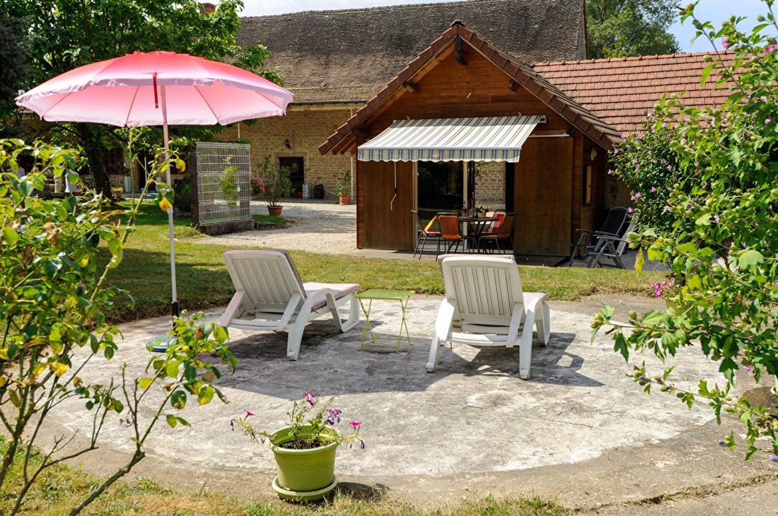 Sylvie & Jean-Louis vous accueillent au sein d’une authentique dépendance agricole du XIXe de caractère intégralement réhabilitée jadis liée à l’élégante ferme traditionnelle voisine, elle également soigneusement restaurée, qu’ils occupent aujourd’hui. Au cœur d’un petit hameau rural résidentiel niché en pleine campagne bressane louhannaise, au creux d’un apaisant écrin préservé conjuguant champs de cultures, rivières & prairies de pâtures, parsemé d’étangs comme d’espaces forestiers, en toute proximité des rives de la Saône & de la Seille, remarquable écosystèmes tous deux classés & protégés en "Zone Natura 2000" pour leurs très riches écosystème faunistiques & floristiques (réserve d'oiseaux migrateurs, espèces végétales rares, nombreux poissons, animaux & faune sauvage… ). Spacieux gîte de très bon confort. Très beaux volumes. Chaleureux cachet campagnard boisé aux airs de doux "chalet" montagnard. Ambiance cosy & douillette. Agréable intimiste jardin (espace réservé) doté d’une double terrasse privative (dont une insolite "plage" de repos en forme de cercle), lové sur une vaste propriété en commun très soignée (engazonnée, arborée & végétalisée) dotée d’une belle piscine (8x4m), d’une balançoire, d’un toboggan et d’une grande cour (littéral terrain de pétanque naturel).