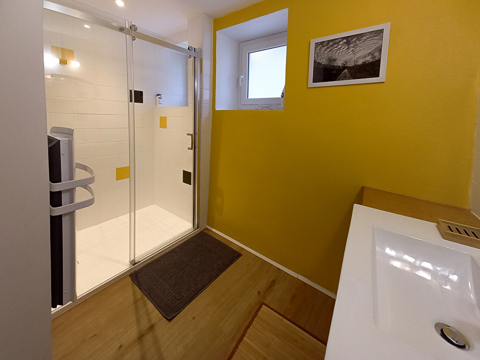 Une salle de bains avec douche à l’italienne avec sèche-serviettes. Toilettes indépendantes. Vous disposez d’un accès au jardin avec mobilier.