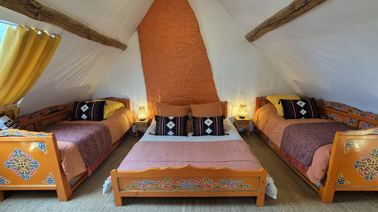 Dormir dans une yourte mongole ou dans l’un des hébergements du domaine, c’est s’offrir un temps suspendu. Un espace simple, chaleureux, protecteur, où l’on peut souffler, se déposer et écouter ce qui se vit en soi. Chaque séjour est une invitation à se reconnecter au vivant, à son corps, à ses émotions, à son souffle.