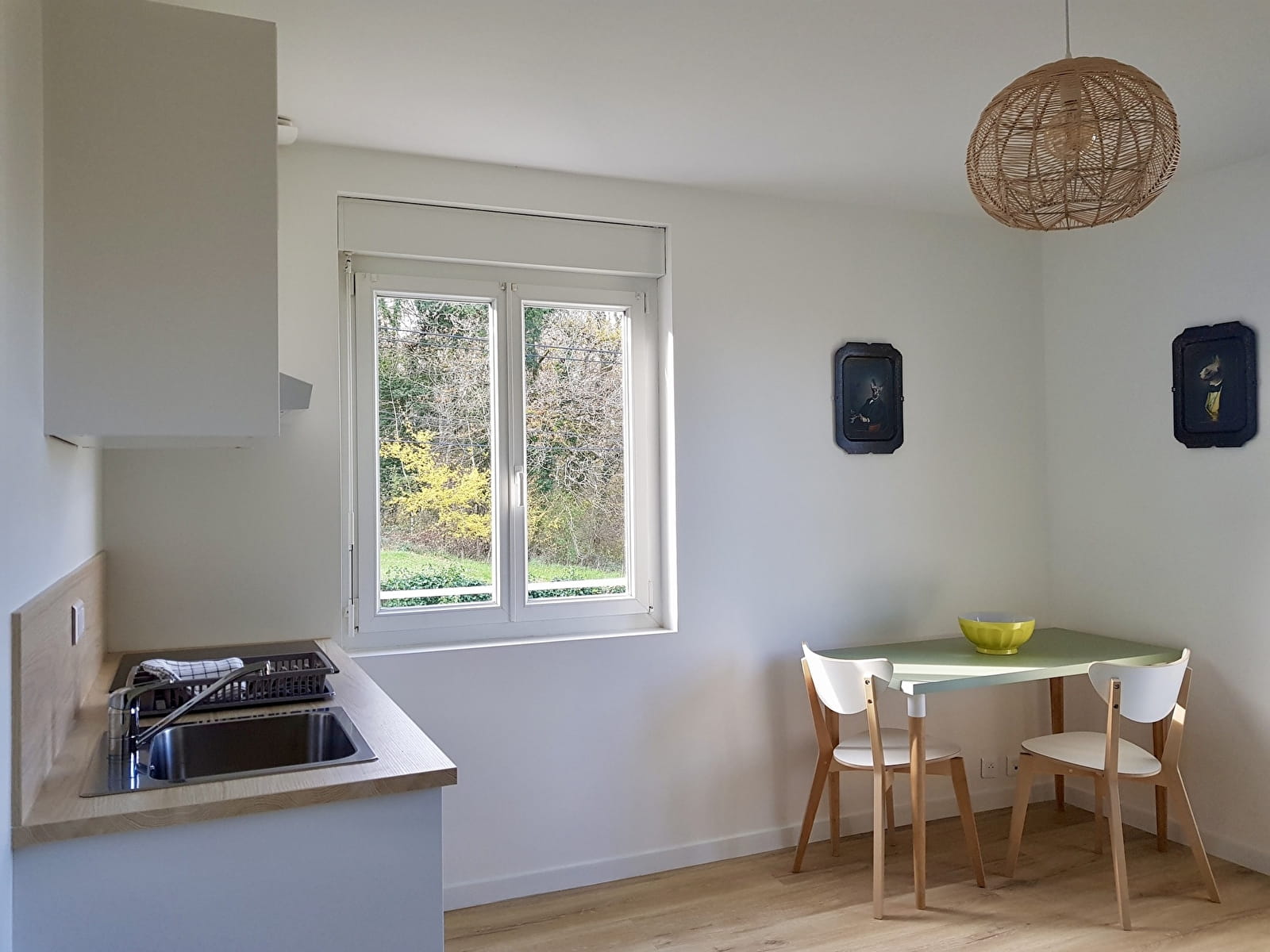 Cet appartement comprend : une pièce à vivre avec cuisine équipée, une chambre indépendante, une salle de bains avec wc.