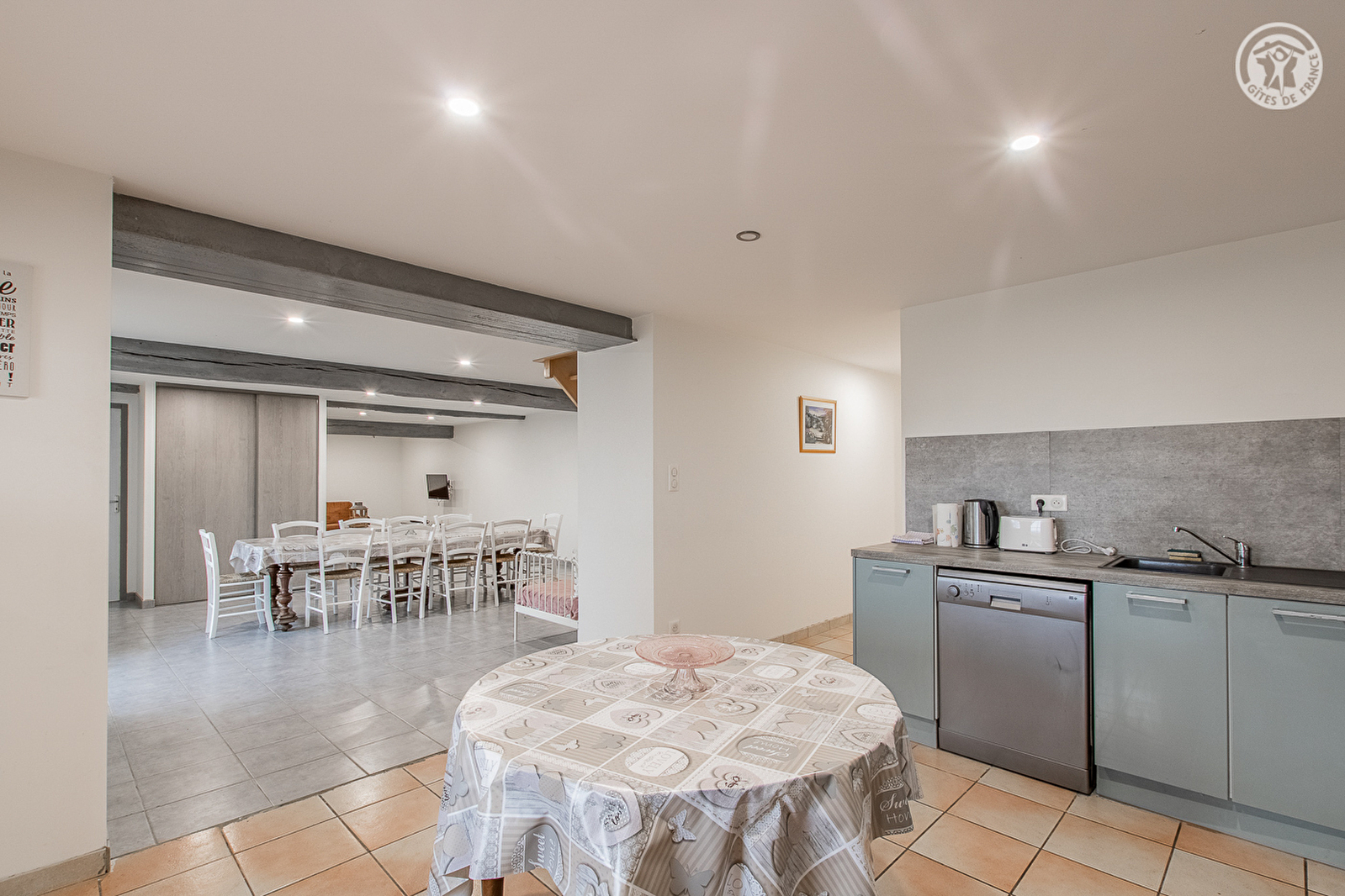 Composition : Maison indépendante voisinant le second gîte des propriétaires (totale indépendance sans vis-à-vis). Wifi. Chauffage électrique. Climatisation à l'étage. Rdc : séjour-cuisine-salon, 2 chambres (disposant chacune de 2 lits 1 p. 90x190cm jumelables en lit 2 p. de 180x190cm), salle de bain (baignoire), salle d'eau (douche), Wc indépendant. 1er étage : 2 chambres (disposant chacune de 2 lits 1 p. 90x190cm jumelables en lit 2 p. de 180x190cm), espace couchage en appoint et/ou salle de jeux sur une mezzanine palière (1 lit 1 p. 90x190cm), Wc indépendant. Terrasse couverte + terrain clos + parking privatifs. Commerces 6 km (Maximarché). Toutes commodités 15 km. Gare 16 km.