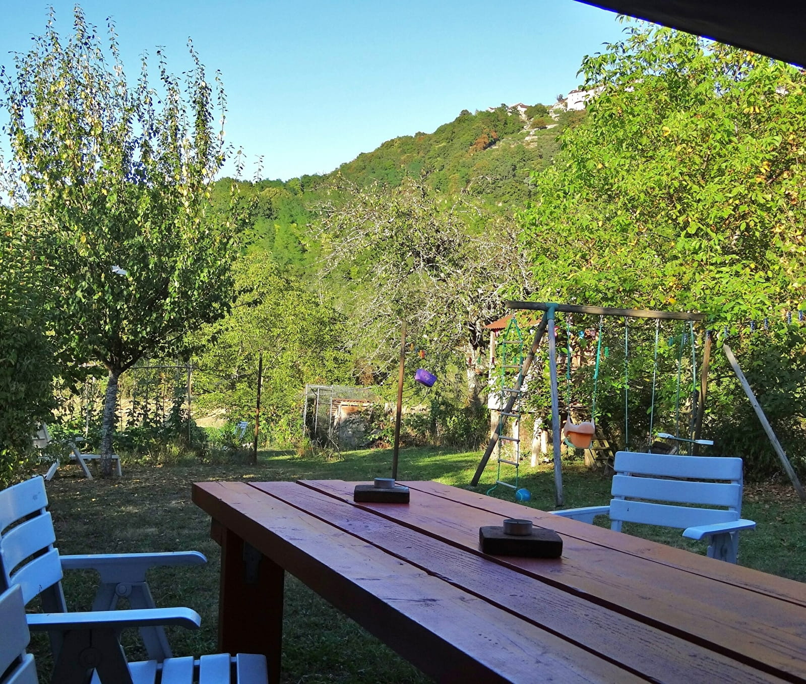 Gîte d'une surface de 65 m², situé au cœur du vignoble jurassien, au rez-de-chaussée de la maison des propriétaires. D'une capacité de 2 à 4 personnes, il est composé d'une grande cuisine équipée (four, lave-vaisselle, micro-ondes, cafetière, bouilloire...), une chambre avec lit double, un salon avec canapé convertible (couchage 2 pers.), une salle de bain avec douche, WC indépendant, buanderie (lave-linge et nécessaire de repassage), accès direct au jardin des propriétaires.