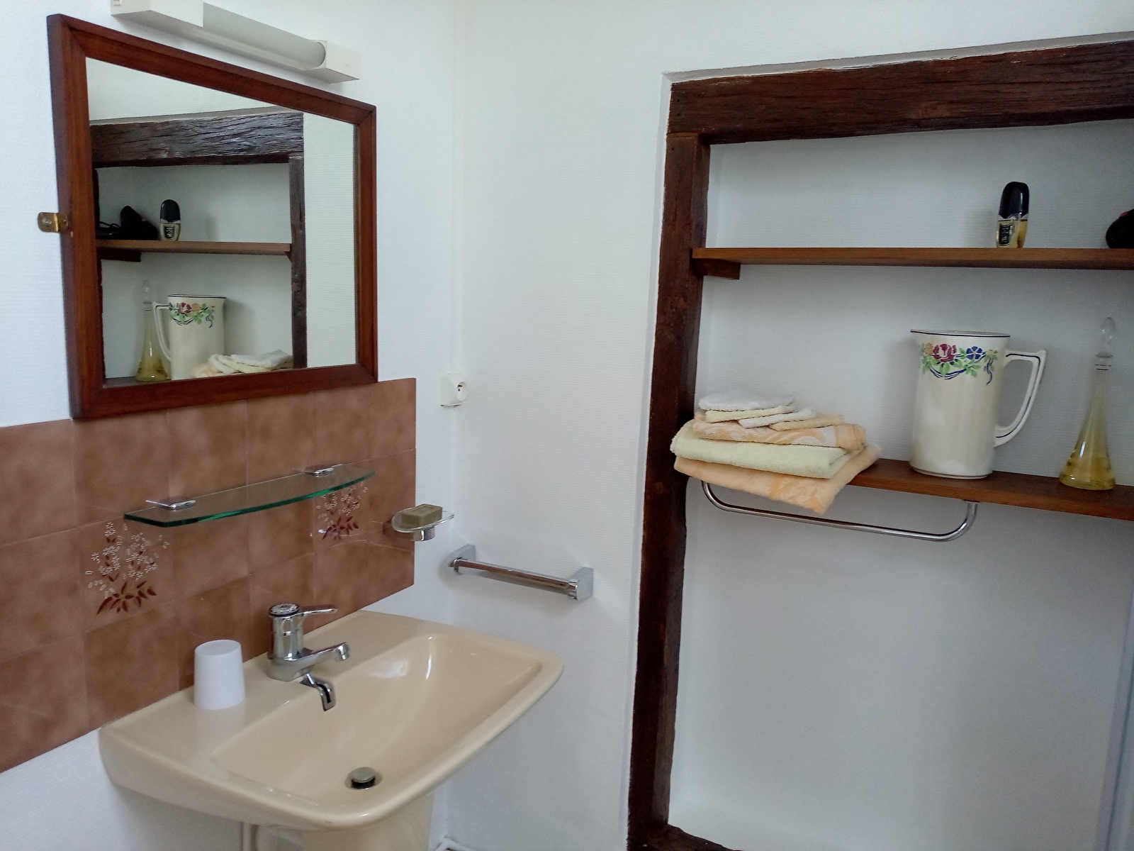 A l'étage : une chambre ( literie de 160) et une salle d'eau avec wc.