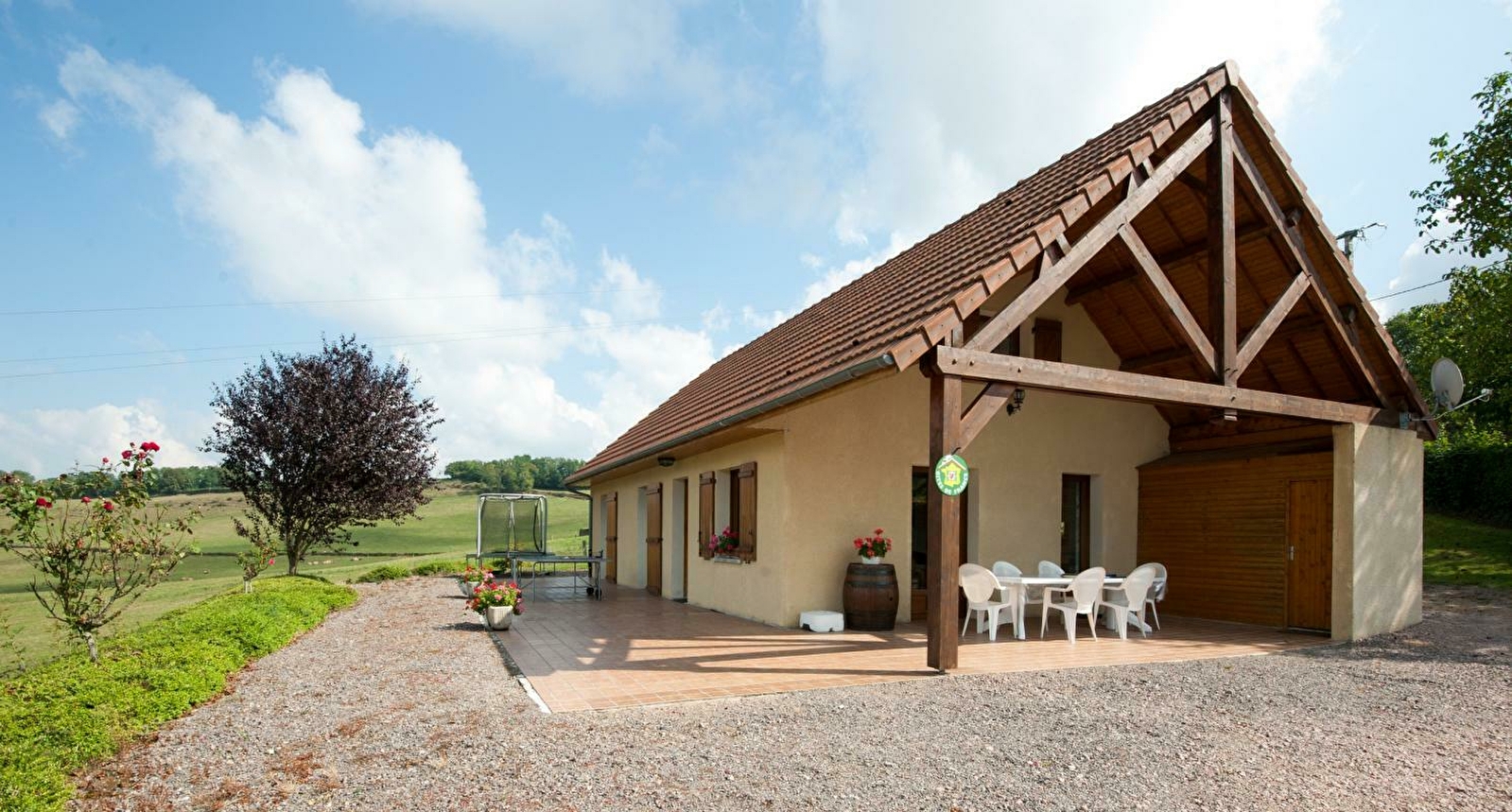 Propriétaire de la maison d'hôtes voisine sise à deux pas, Danièle vous accueille au sein d'une belle villa contemporaine de pays (datant de 2003) blottie au calme, à flanc de coteau sud-est bien exposé, en lisière d'un vaste cirque de prairies (avec les aubracs & charolaises comme paisibles voisines) au sein d'un mini hameau rural dominant « en balcon » le village de Curgy (église romane classée du XIe). Niché en pleine campagne morvandelle autunoise, à 10 km du majestueux Château de Sully (XVIème siècle / classé MH), l'un des plus beaux châteaux privés français ouvert au public, lieu de naissance de Mac Mahon président de la république française, au creux d'un verdoyant vallon de bocage voisinant un immense massif forestier sauvage (ensemble de plusieurs vastes forêts domaniales) et la bucolique vallée de la Drée (& sa rivière poissonneuse), ce petit bourg typique profite d'un apaisant cadre champêtre préservé de montagne douce vallonnée. Spacieux gîte de bon confort. Chaleureux cachet campagnard. Grande salle de jeu lovée sous les toits en mode « cabane ». Vaste espace terrasse de 70m² en grande partie abritée. Agréable jardin engazonné proposant table de ping-pong, trampoline & balançoire. Superbe vue dégagée sur la campagne environnante avec les monts du Morvan en toile de fond. Accès à la superbe piscine chauffée couverte de la propriétaire sise à 50m (3.5x9m / en commun avec sa chambre d'hôtes / pool-house avec douche-Wc).