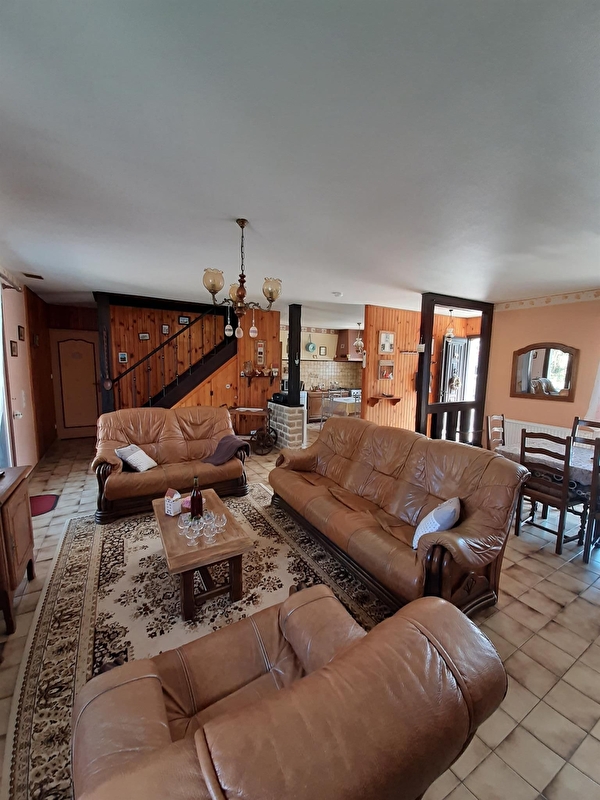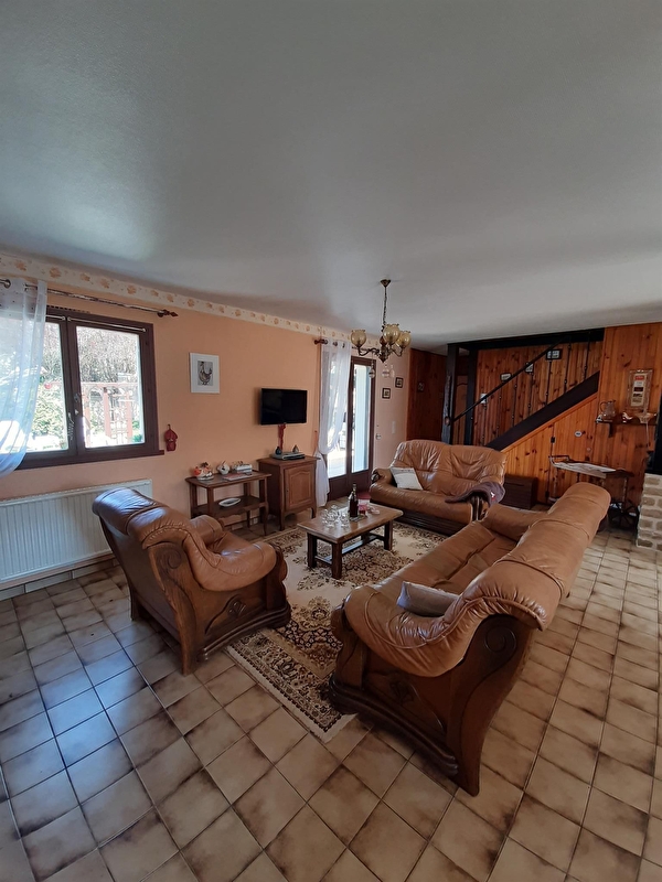 Au rez de chaussée, cuisine ouverte sur un grand séjour/salon avec insert (bois offert), salle de bains et WC indépendant. A l'étage : 3 chambres (1 lit 2 pers. et 4 lits 1 pers).