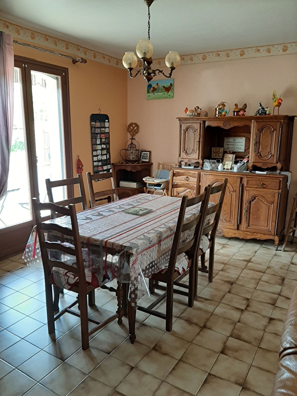 Grand jardin arboré et entièrement clos. Cuisine d'été. Salon de jardin et barbecue, grand garage.