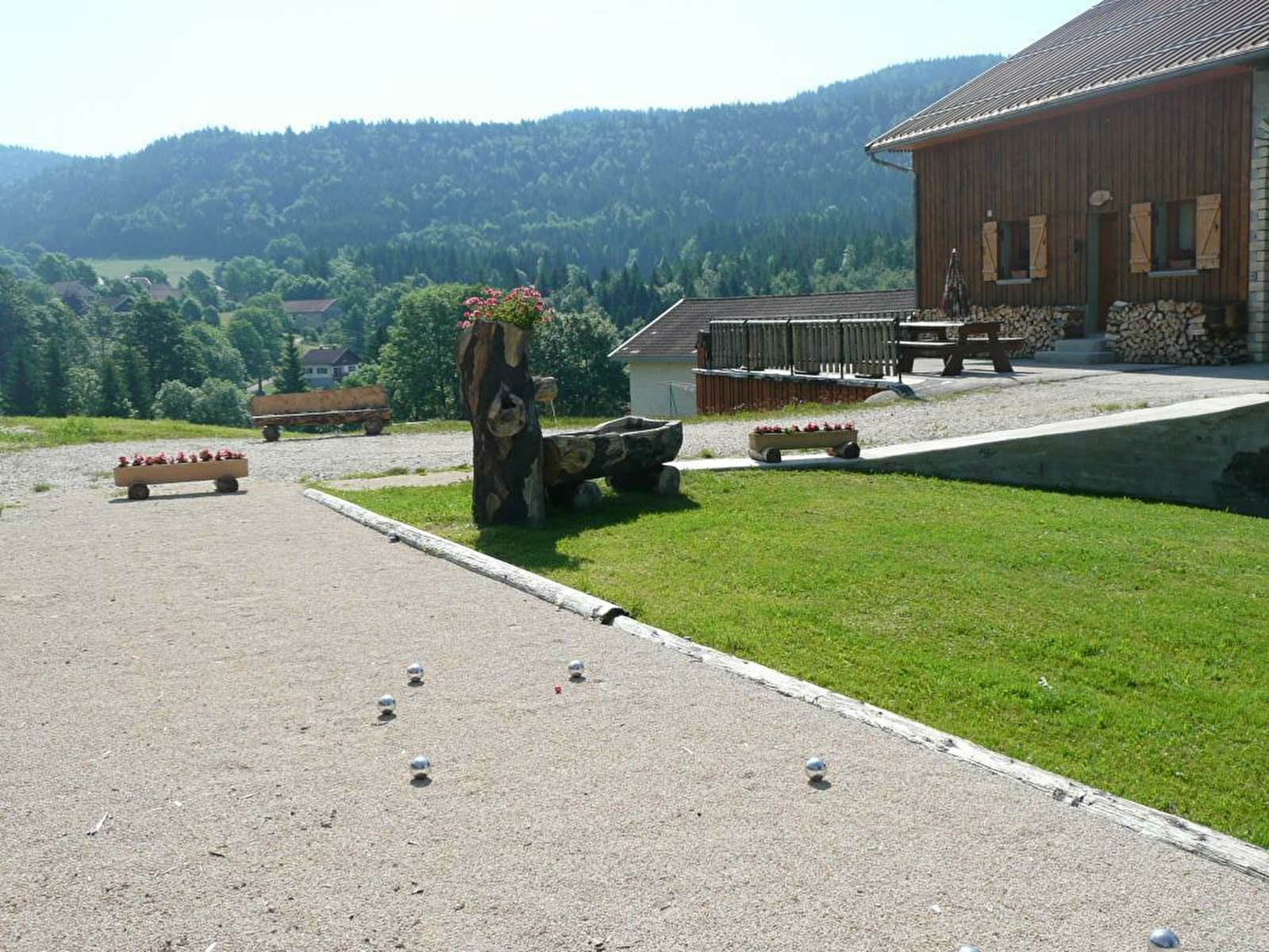 En pleine nature, au pied d'une piste de raquette, très beau logement à la décoration "ambiance chalet" aménagé au rez-de-chaussée d'une ancienne ferme du Haut-Jura entièrement rénovée, où se trouvent deux autres gîtes. Coin-cuisine-séjour, salon, TV écran plasma, 1 première chambre avec: 1 lit 2 places et une deuxième chambre avec 2 lits 1 place, salle d'eau, WC indépendant. Chauffage central. Grande terrasse attenante avec barbecue, salon de jardin, chaises longues, et magnifique vue sur les montagnes et la renardière située à 500 mètres environ (découverte possible). Calme et détente assurés. Références des autres gîtes G1341 et G1360.