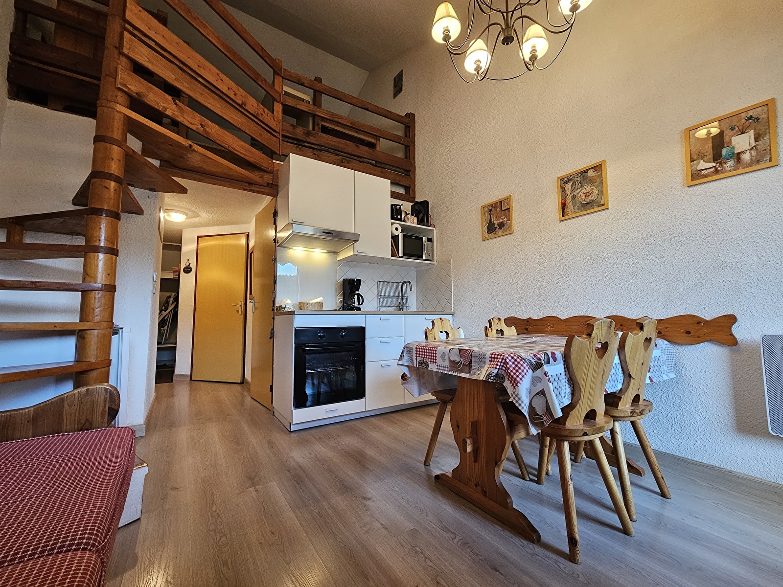 Situé dans la résidence "La Roche du Creux", ce studio de 32m² est composé d’une pièce principale avec coin cuisine, banquette. Une chambre indépendante avec lit de 140cm et d'une salle de bain. Mezzanine avec deux lits de 90cm.