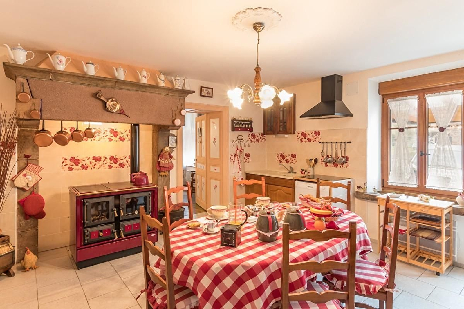 Dans village proche de la station thermale de Luxeuil-Les-Bains (12 km), maison de style campagnard, mitoyenne à la maison des propriétaires, entrée indépendante, sans vis-à-vis. Rez-de-chaussée : cuisine (plaques à induction) /salle à manger avec poêle à bois et équipement électroménager complet,avec lave-vaisselle. Salon très spacieux et confortable. Local laverie avec Wc, douche et lavabo.