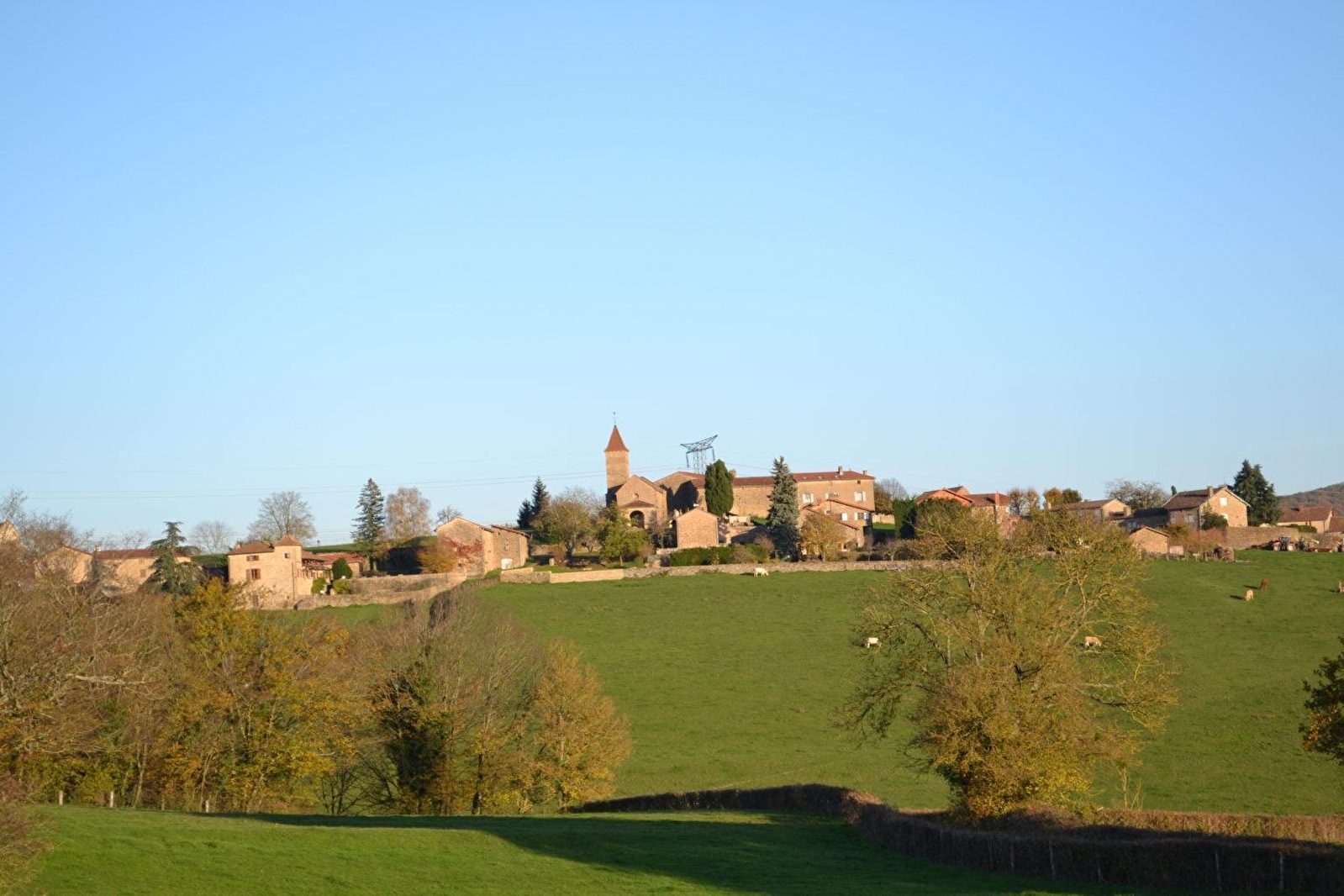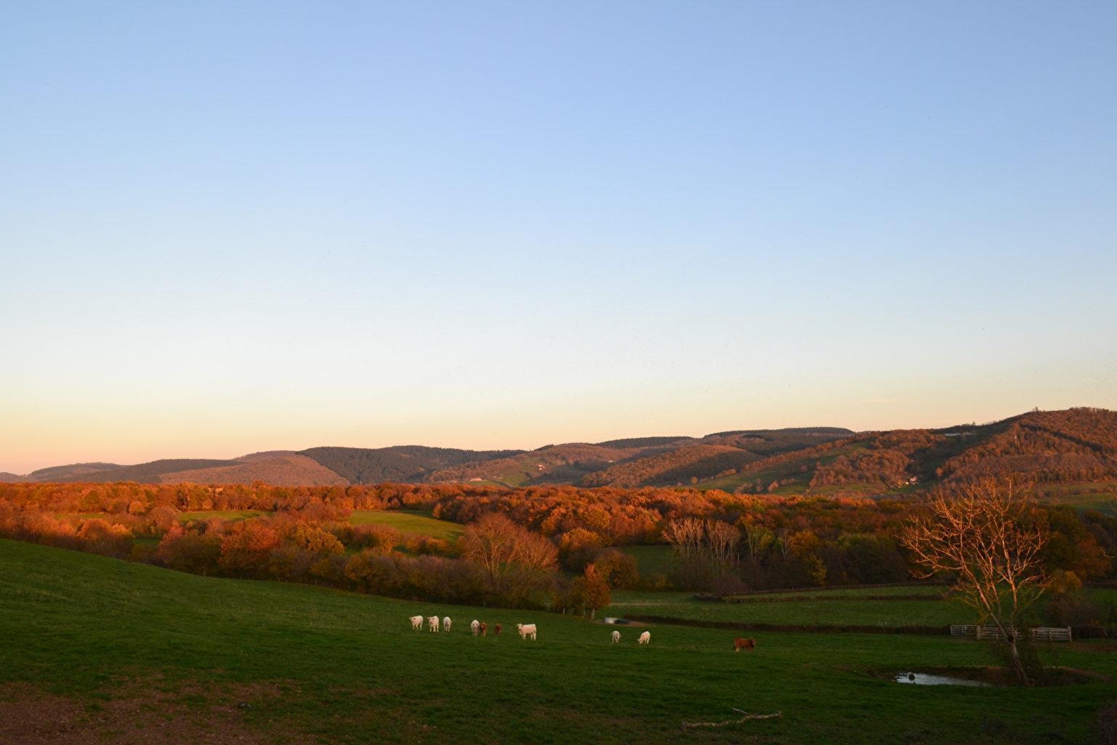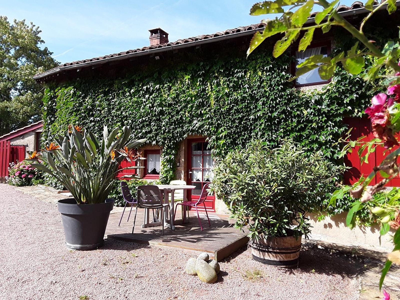 Agriculteurs retraités (anciens éleveurs de vaches charolaises & chèvres), Monique & André vous accueillent au sein d’une charmante authentique ferme traditionnelle érigée au XVIIème siècle, chargée d’histoire & restaurée avec soins (propriété familiale depuis des générations), sublimée par une jolie vigne vierge pluriséculaire qui habille sa façade, lovée en "balcon panoramique", à flanc de coteau sud exposé. Calme absolu en pleine campagne clunisoise préservée (protégé en Zone Natura 2000 & ZNIEFF pour ses richesses floristiques & faunistiques), dominant un vaste vallon "ouvert" de verdoyantes prairies bocagères cerclé de collines boisées (où pâturent de paisibles chevaux en saison & "Roudoudou" l’âne des propriétaires), blotti au cœur d’un pittoresque petit hameau rural juché en "vigie" sur une colline dominant la douce vallée de la Grosne & sa rivière poissonneuse, à deux pas de l’élégante église romane classée des lieux (datant du XIème siècle). Sublime écrin paysagé alentour, mixant agriculture & pleine nature entre bocages, & profondes forêts sauvages. Somptueux panorama & exceptionnelle vue dégagée sur les monts du sud Mâconnais. Cadre & site de toute beauté, littéralement enchanteur. Spacieux gîte de bon confort. Chaleureux cachet campagnard "néo-rustique" allié à l’ambiance dépaysante d’une ancienne demeure bourguignonne (restauration patrimoniale ultra soignée : historiques poutres & manteaux de cheminée, rarissime sol en dalles de pierres d’origine…). Agréable intimiste vaste cour close végétalisée parée d’une large terrasse exposée & ombragée (selon).