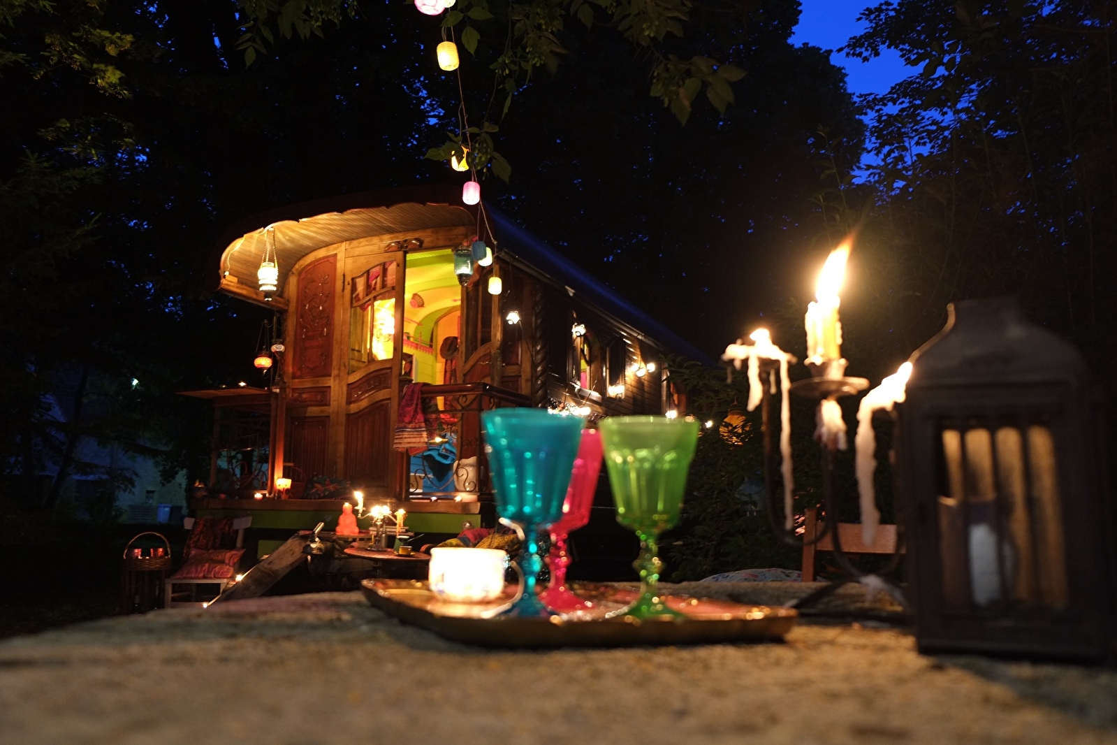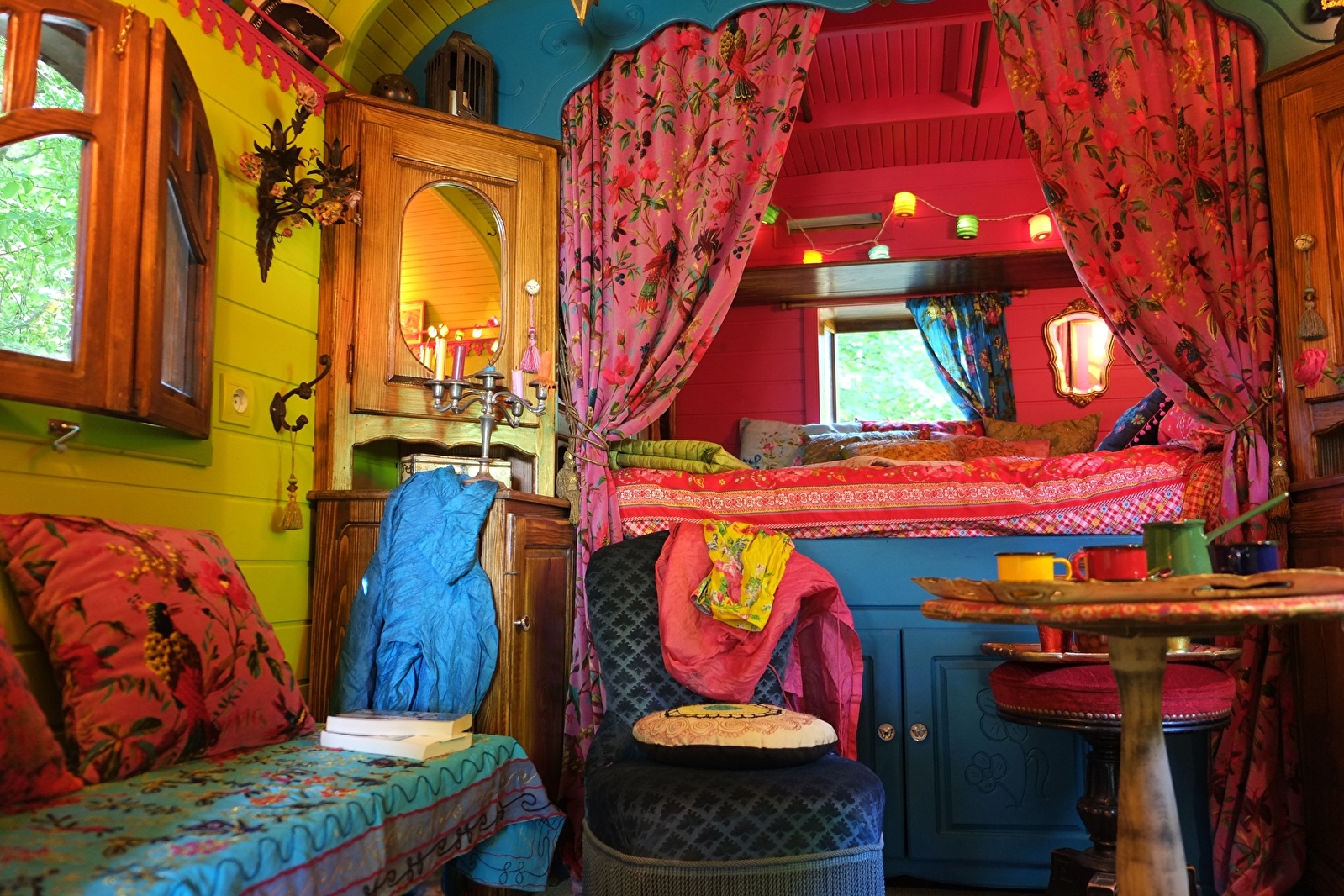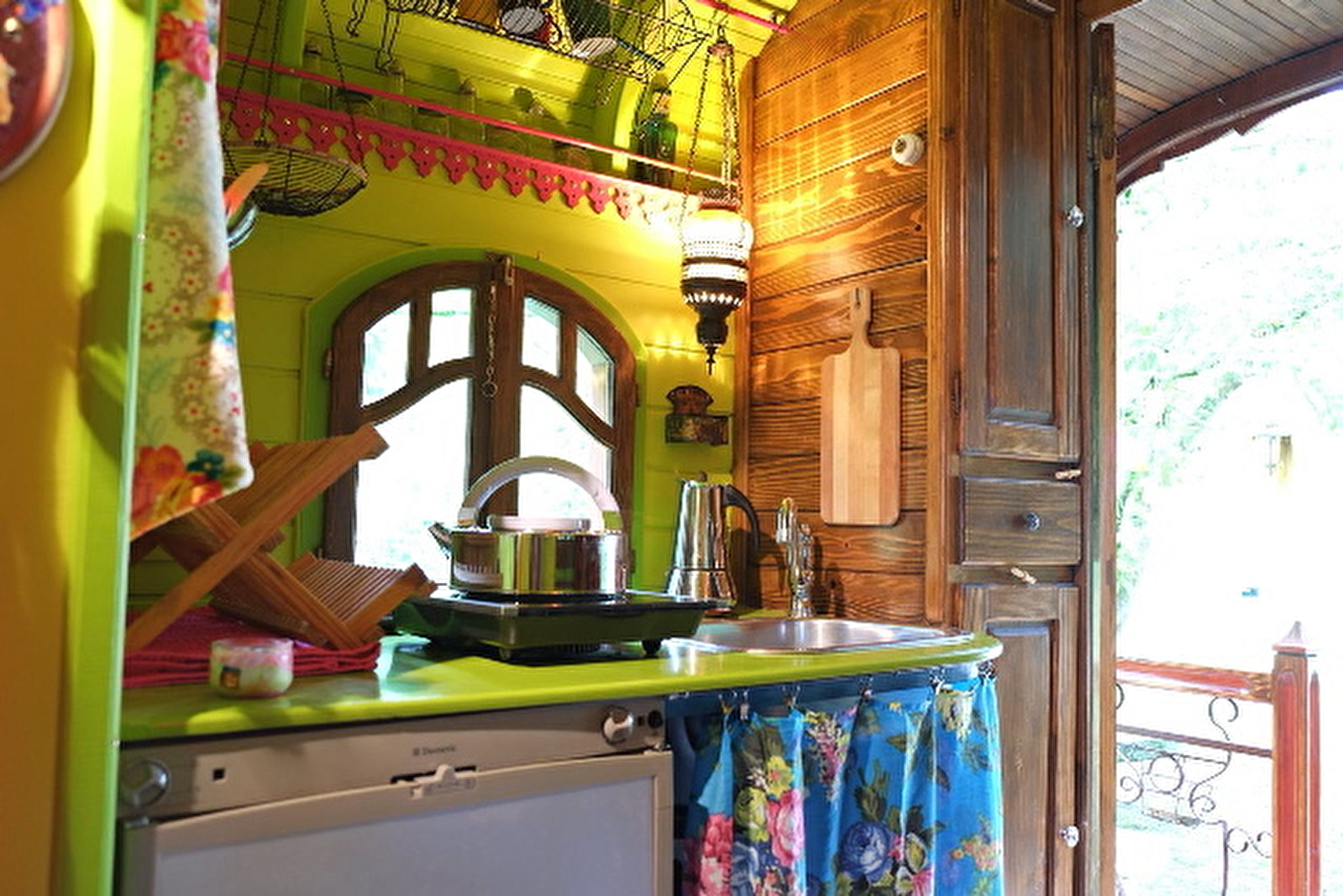 Lovée sous de grands arbres, dans un petit parc clos, longé par un cour d’eau, la Roulotte de Sandor, douce et colorée, vous attend. Cette roulotte a une belle histoire de roulotte qui a roulé... Petit-déjeuner inclus.