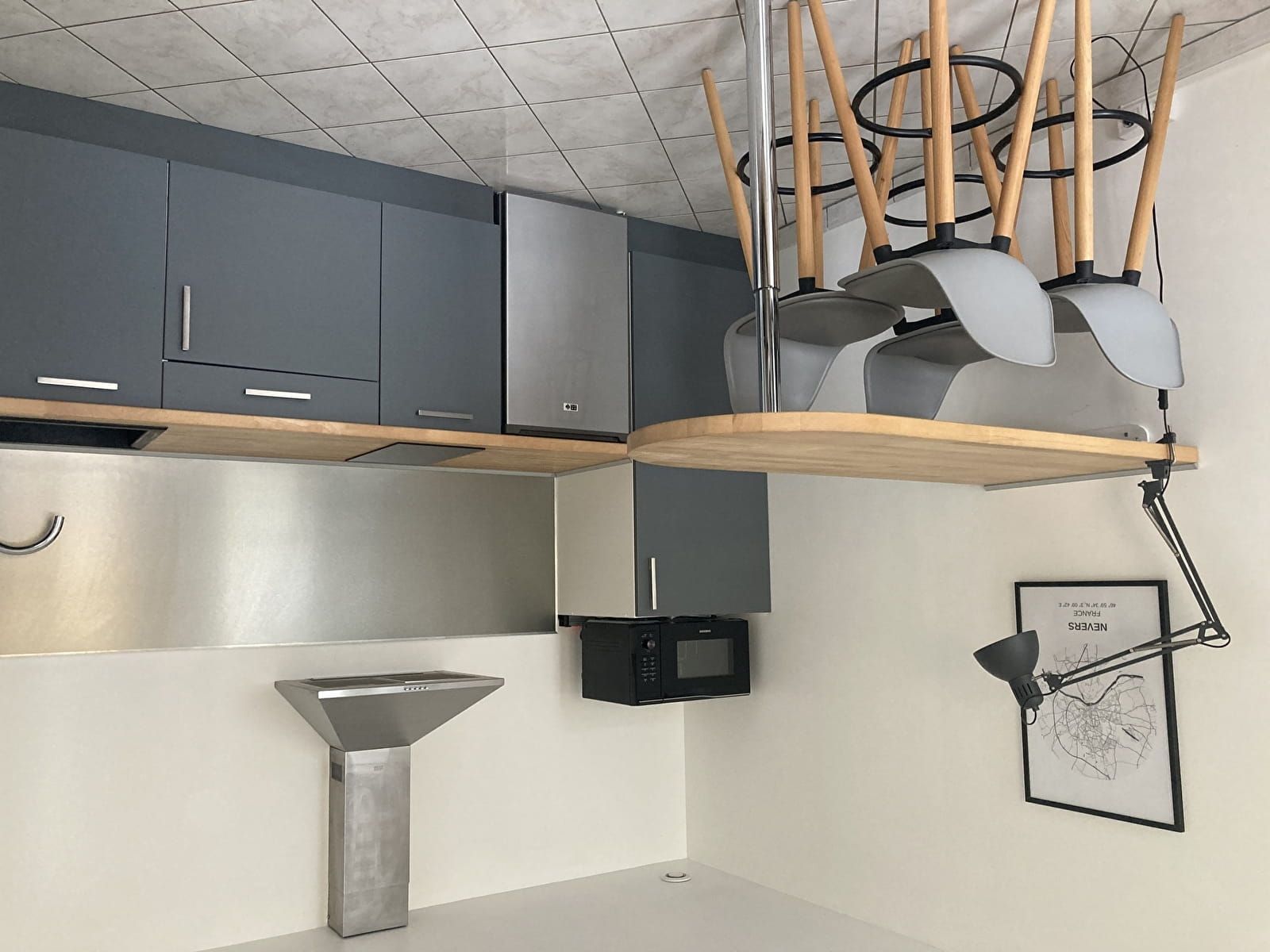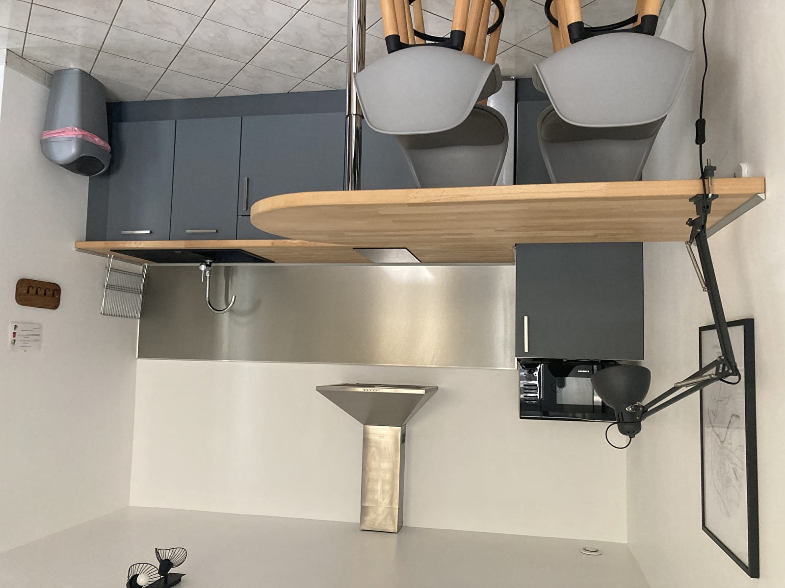 Vous disposez d’un coin cuisine avec un frigo, une double plaque de cuisson, une hotte, un micro onde combiné ( four), une cafetière, une bouilloire, vaisselle pour 4 personnes.