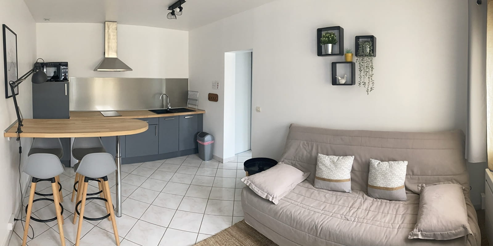 Logement entièrement rénové comprenant un salon/séjour possédant un couchage d'appoint ( clic-clac 140/190 matelas bultex),cuisine équipée, une chambre avec lit double, une salle de bain avec douche et wc.