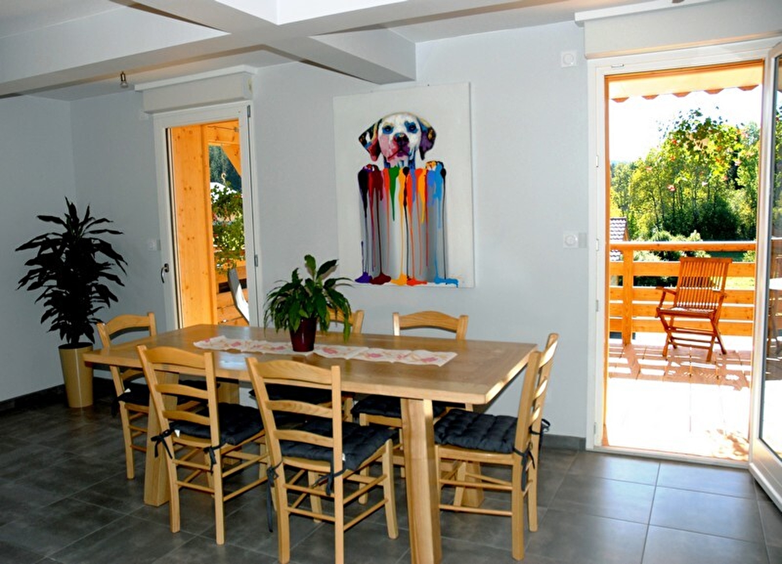 En plein coeur du Parc Naturel Régional du Haut Jura, à proximité de la région des lacs est aménagé ce gîte au 1er étage. Entièrement rénové, vous disposerez d'un hall d'entrée avec 1 wc indépendant, d'une belle et vaste pièce à vivre avec salle à manger et cuisine, accès au grand balcon avec salon de jardin et barbecue électrique. A l'étage : salon aménagé sur la mezzanine (TV écran plat), 2 chambres avec chacune 1 lit 2 places en 140 et une 3ème chambre avec 2 lits 1 place, vaste salle d'eau (douche et wc). Draps fournis et lits faits à l'arrivée. Idéalement situé à proximité des pistes de ski et de la route d'accès à la station des Rousses. Local fermé pour ski, vélos, poussettes. Abri couvert pour voiture. Possibilité location courts-séjour et wkd : se renseigner auprès des propriétaires.