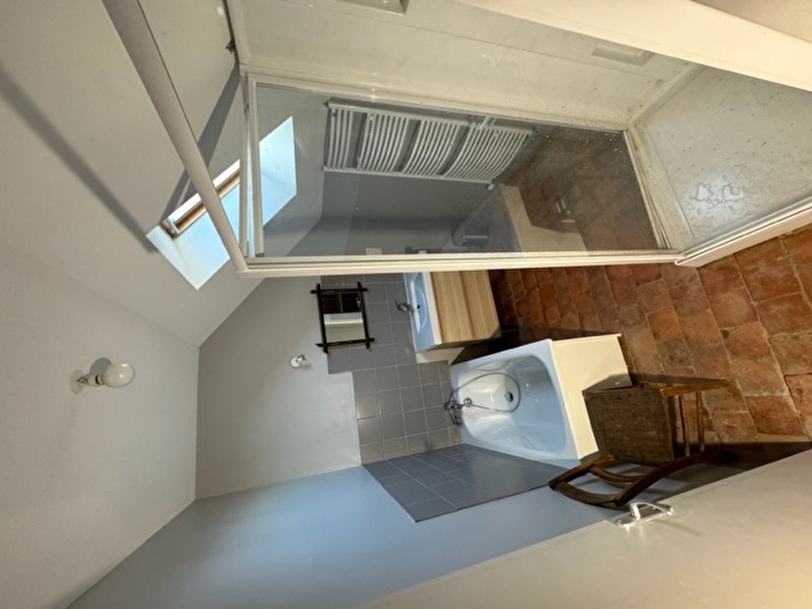 Rez-de-chaussée surélevé : entrée, cuisine aménagée, séjour/salon, 1 chambre (1 lit 140) avec salle d'eau, WC indépendant.