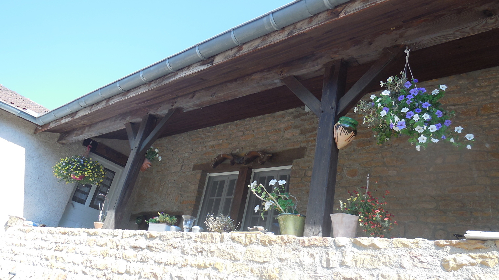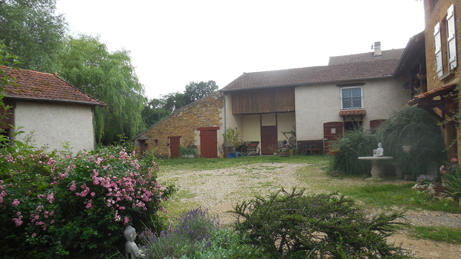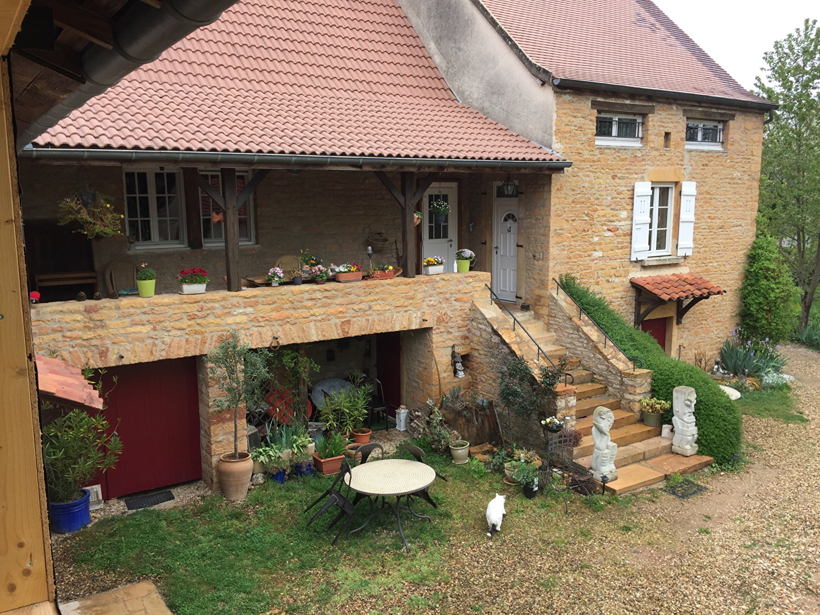 La maison est une ancienne ferme dans le style Mâconnais, construite en pierre de Bourgogne avec une galerie Mâconnaise, située à l’entrée du village, en bas de la colline, en face de la Mairie et à peine à 10 mn à pied de la Communauté.