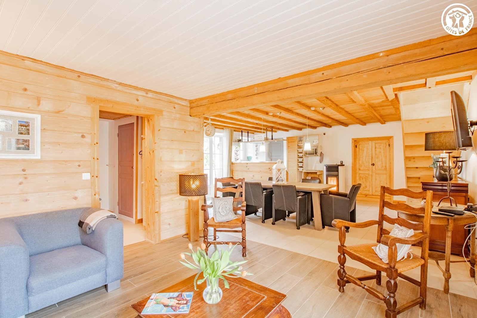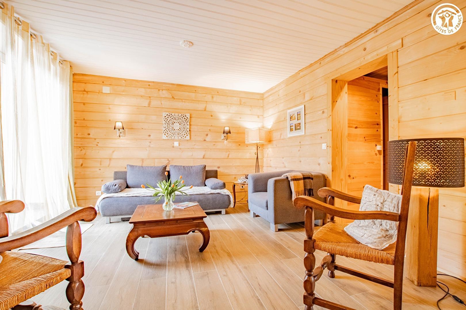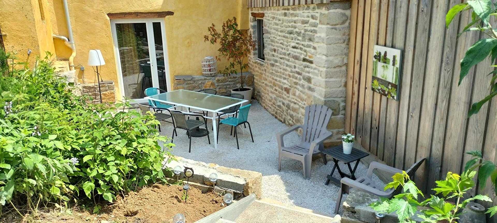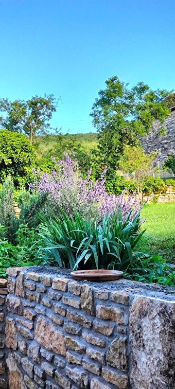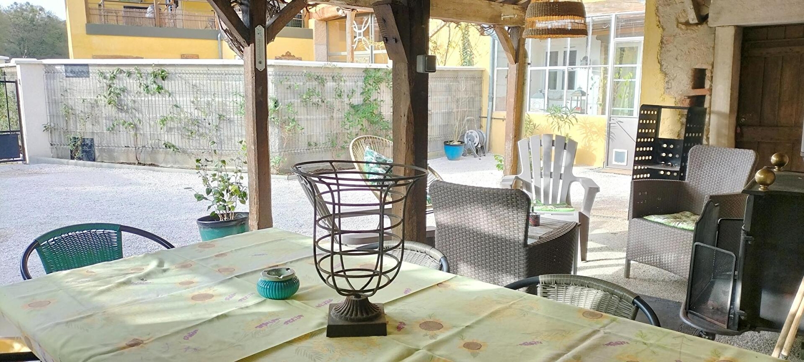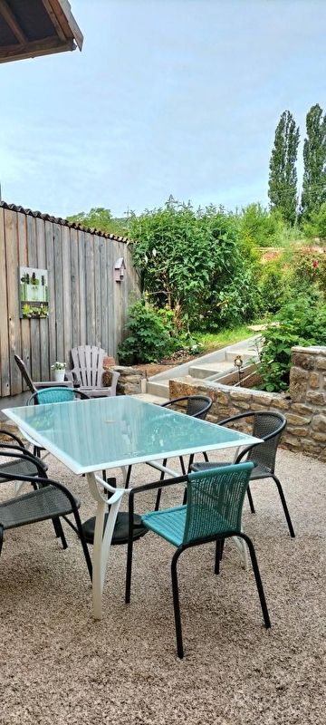 Belges d'origine et bourguignons d'adoption, Vinciane & Alain vous accueillent au sein d'une élégante authentique maison vigneronne de caractère de 1870, pétrie d'histoire & soigneusement restaurée (dotée d'une traditionnelle "galerie mâconnaise"), blottie au calme en lisière d'un bucolique plateau de prairies niché sous de douces crêtes boisées, à deux pas des vignobles, aux confins d'un paisible pittoresque petit village viticole du haut mâconnais. Parfaitement sauvegardé, lové en pleine campagne tournugeoise préservée au creux d'un apaisant vallon cerclé de vastes massifs forestiers sauvages, sur le versant sud de la colline de la Crâ (offrant par temps clair une vue panoramique exceptionnelle jusqu'au Mont Blanc), au sein d'un espace naturel protégé en ZNIEFF & "Zone Natura 2000" pour ses riches faunistiques & floristiques (à parcourir à pied ou VTT), le bourg typique de Royer profite d'un sublime écrin paysagé. Spacieux gîte de très bon confort. Ravissant cachet campagnard mixé à une chaleureuse ambiance montagnarde boisée d'esprit "chalet". Beaucoup de charme. Cosy & douillet. Agréable large cour close, végétalisée & fleurie (à l'est) dotée d'une double terrasse (une abritée & une "sur cour" en gravier). Vaste terrasse en gravier ombragée & exposée (à l'ouest) ouvrant sur un agréable jardin clos engazonné (400m²), végétalisé & arboré, disposant d'un "jardin aromatique" & d'un mini verger (cerisier, pommier, pêchers de vigne, noyer, poirier, figuier etc…/ cueillette possible).