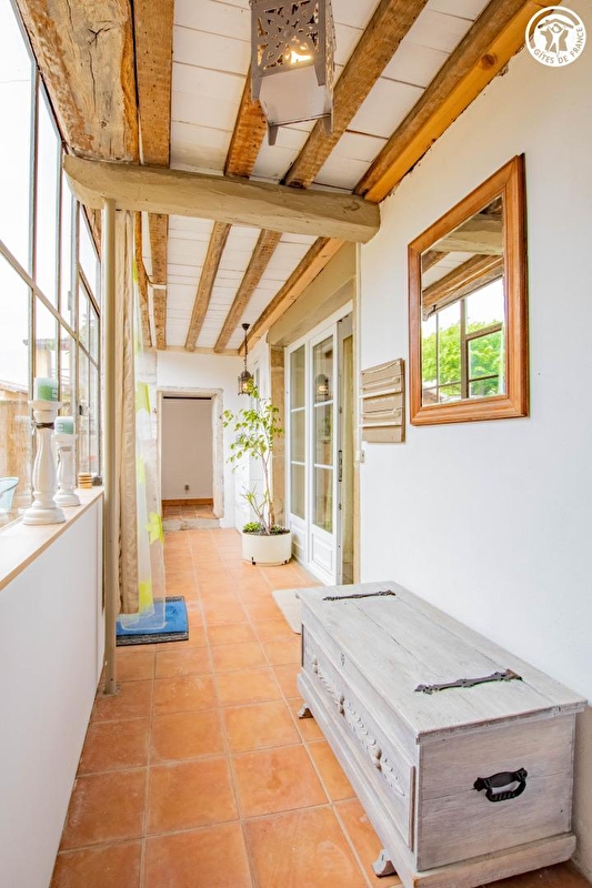 Composition : Gîte mitoyen à l'habitation des propriétaires sur propriété abritant second gîte (indépendance totale). Wifi (fibre). Chauffage électrique + poêle granulés bois. Rdc : séjour-cuisine-salon, salle de bain (baignoire/Wc), Wc indépendant, véranda. 1er étage : 3 chambres (lit 2 p. 160x200cm dans chaque), salle d'eau (douche multijets), Wc indépendant. Cour close + terrasse en gravier + terrasse abritée + local vélos + parking privés. Toutes commodités dont supermarchés 8.5 km.