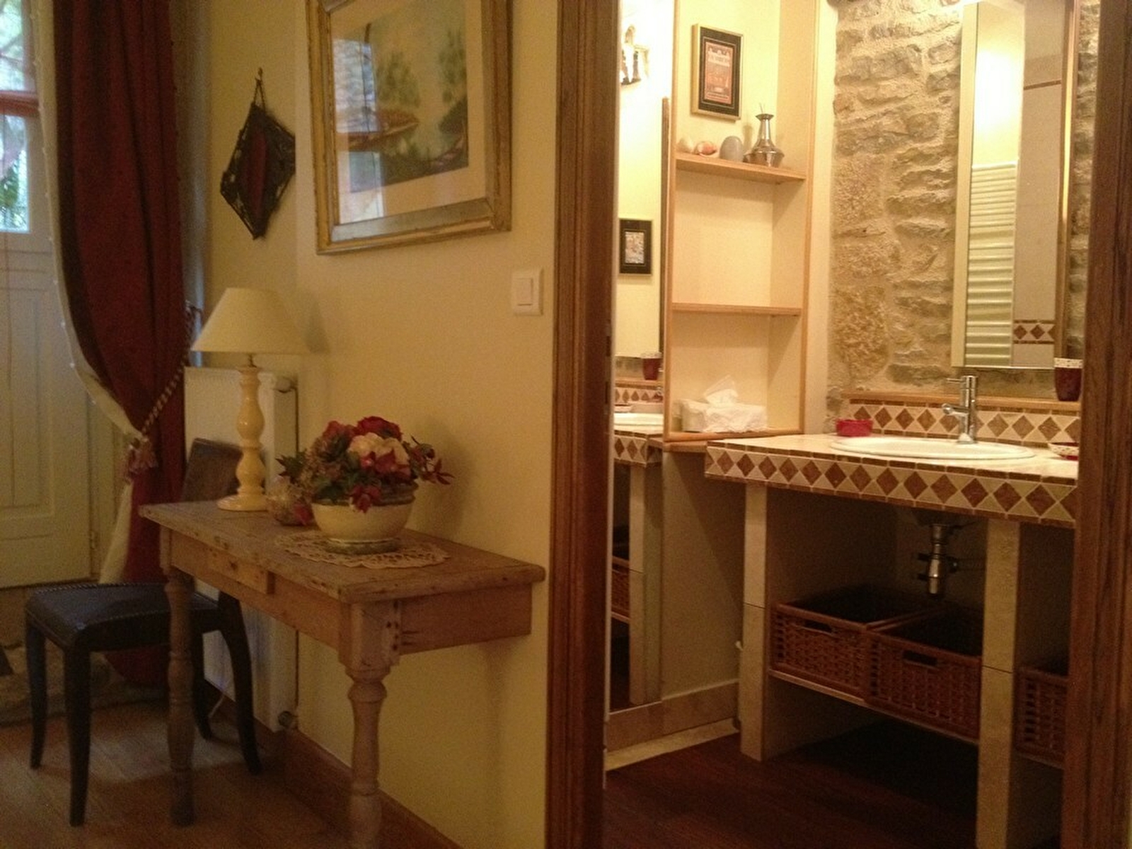 Mitoyenne à la propriété dans une autre dépendance, la suite Les Fleurières bénéficie d'un bel espace entouré de verdure avec une entrée indépendante.