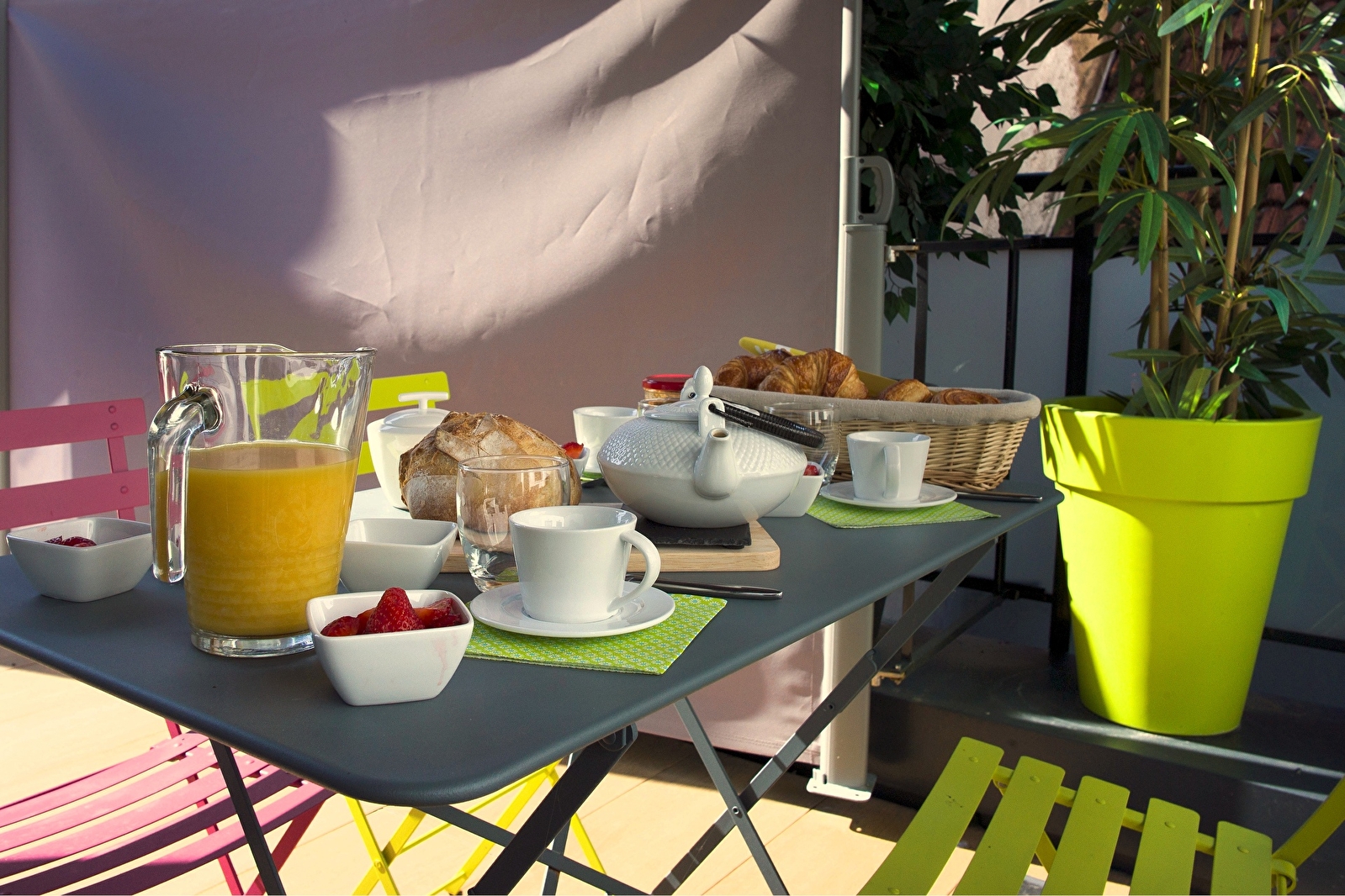Combiné avec l'appartement "La Véranda", la Terrasse des Climats accueille de 6 à 9 personnes. Les 2 terrasses des appartements peuvent alors être réunies en retirant la séparation amovible.