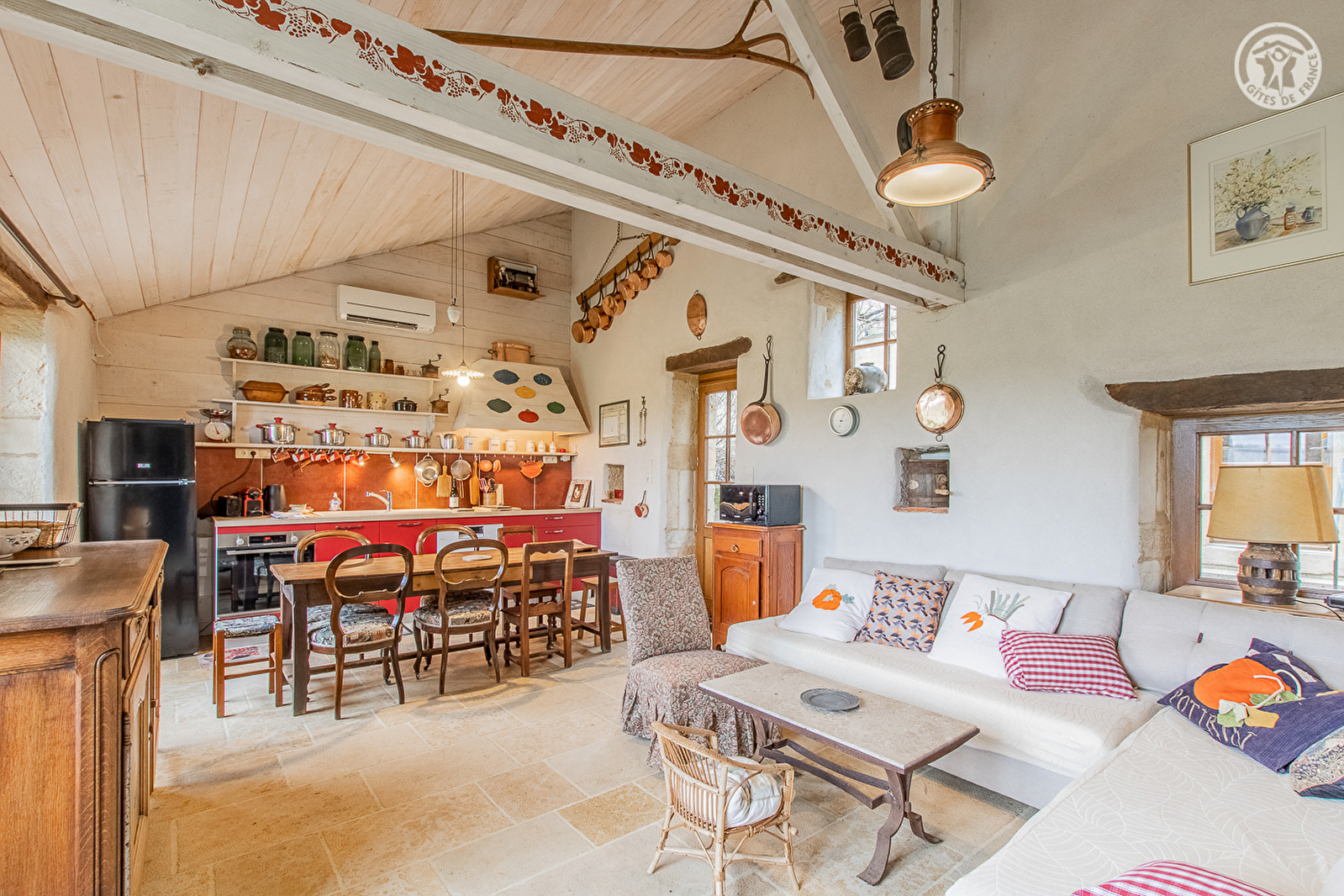 Composition : Maison individuelle voisinant second gîte (indépendance totale). Wifi. Chauffage PAC. Rdc : séjour-cuisine-salon (canapé d'appoint modulable en lit 2 p. 150x190cm ou 2 lits 1 p. 75x190cm), salle d'eau (douche/WC). 1er étage : chambre (2 lits 1 p. 90x190cm). 2ème ét. : chambre (2 lits 1 p. 90x190cm) avec sdb privative "ouverte" (baignoire îlot sur pied) & WC indépendant. La tour est ouverte via une trémie centrale sans porte qui distribue les étages. Terrain commun aux gîtes (3000m²) : cour, piscine naturelle (8x4m), terrain pétanque, abri voitures (sans place attribuée) & chenil clos pour chiens. Chiens non autorisés "côté piscine". Parking privé. Local vélos. Toutes commodités.