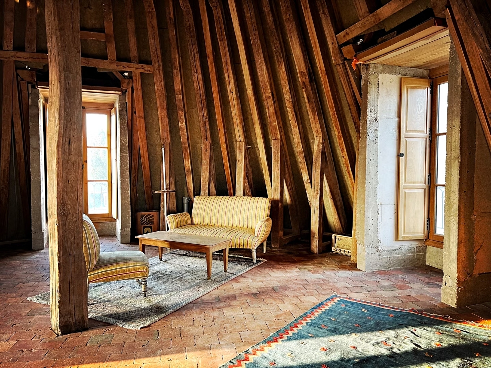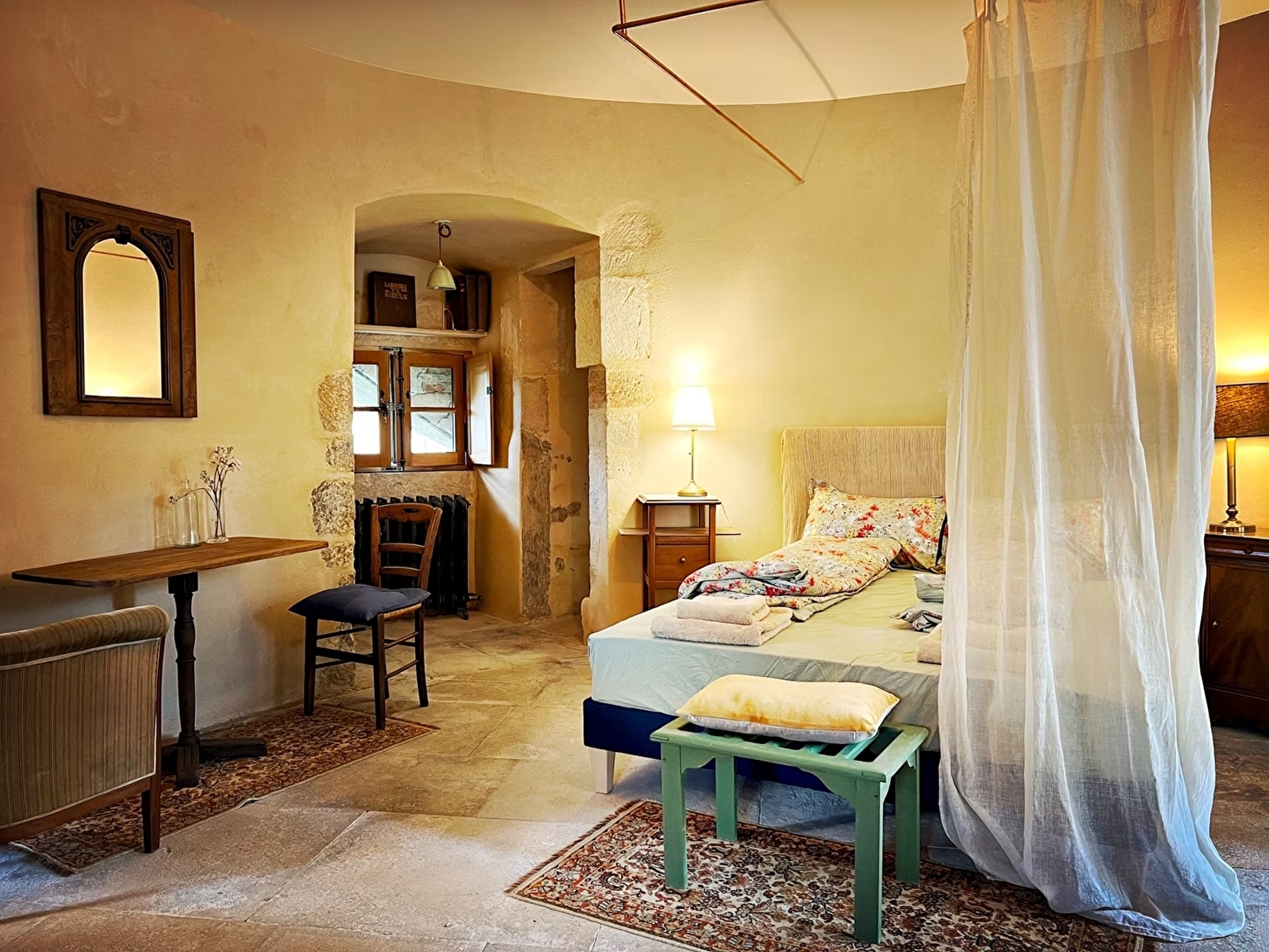 Le gîte de la Tour Beurdelaine comprend 2 chambres séparées de 27 m2 (chacune a son entrée) avec salle de bain et WC privés, une cuisine et un salon à partager. Il est possible de louer toute la Tour ou seulement une chambre.