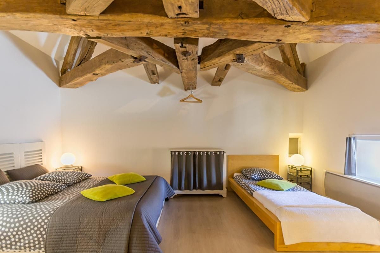 De par l'originalité de la construction de cette tour atypique, la chambre est communicante avec un second niveau, où on trouve une belle grande chambre sous une imposante charpente en hélice (1 lit 160 x 200 et 2 lits 90 et 1 lit gigogne).