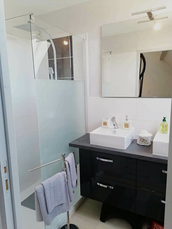 L'entrée au gîte est indépendante par une tour ou sinon par l'intérieur de notre maison.