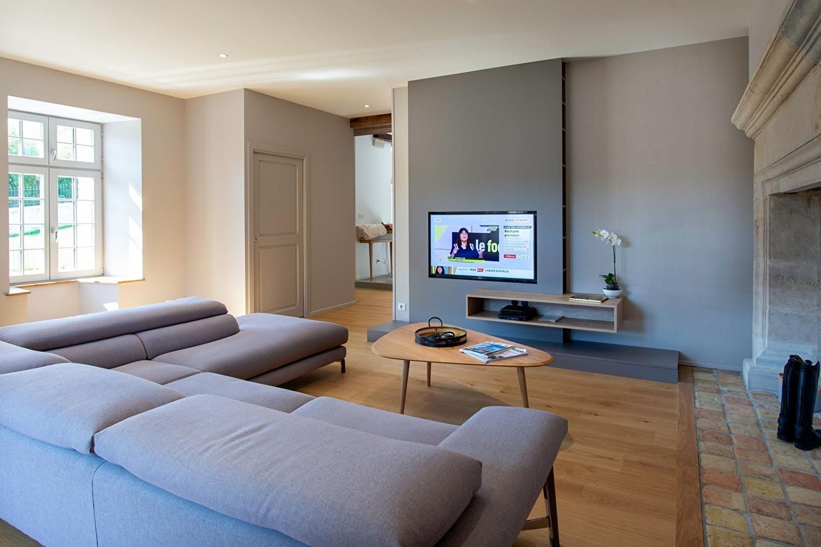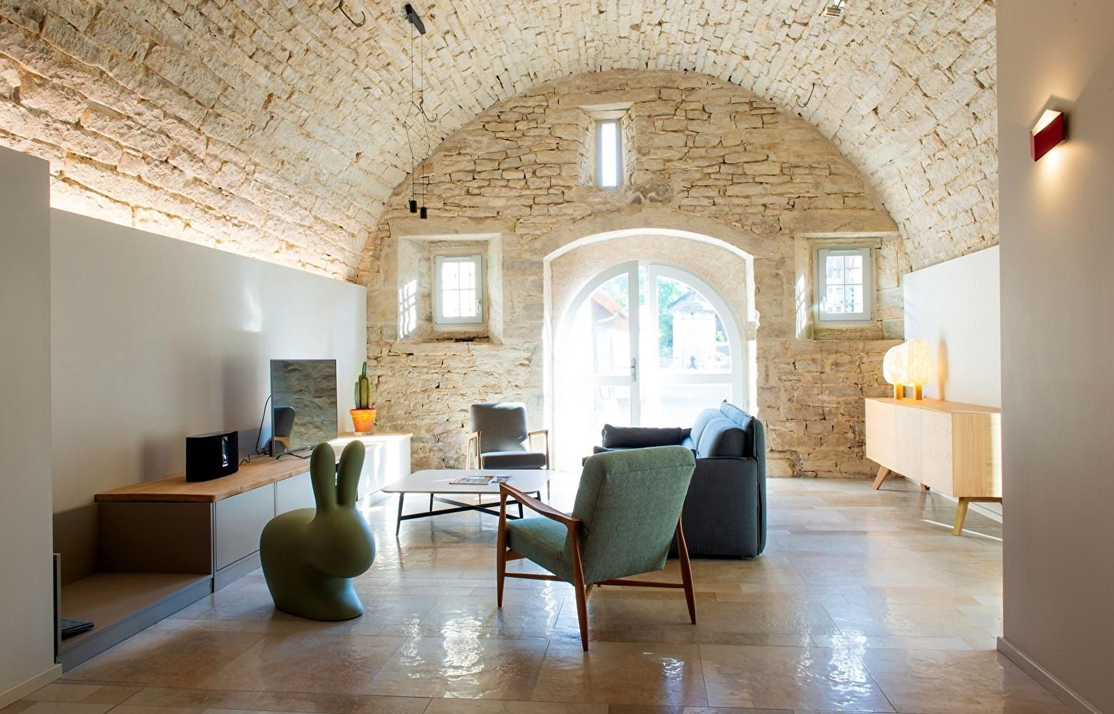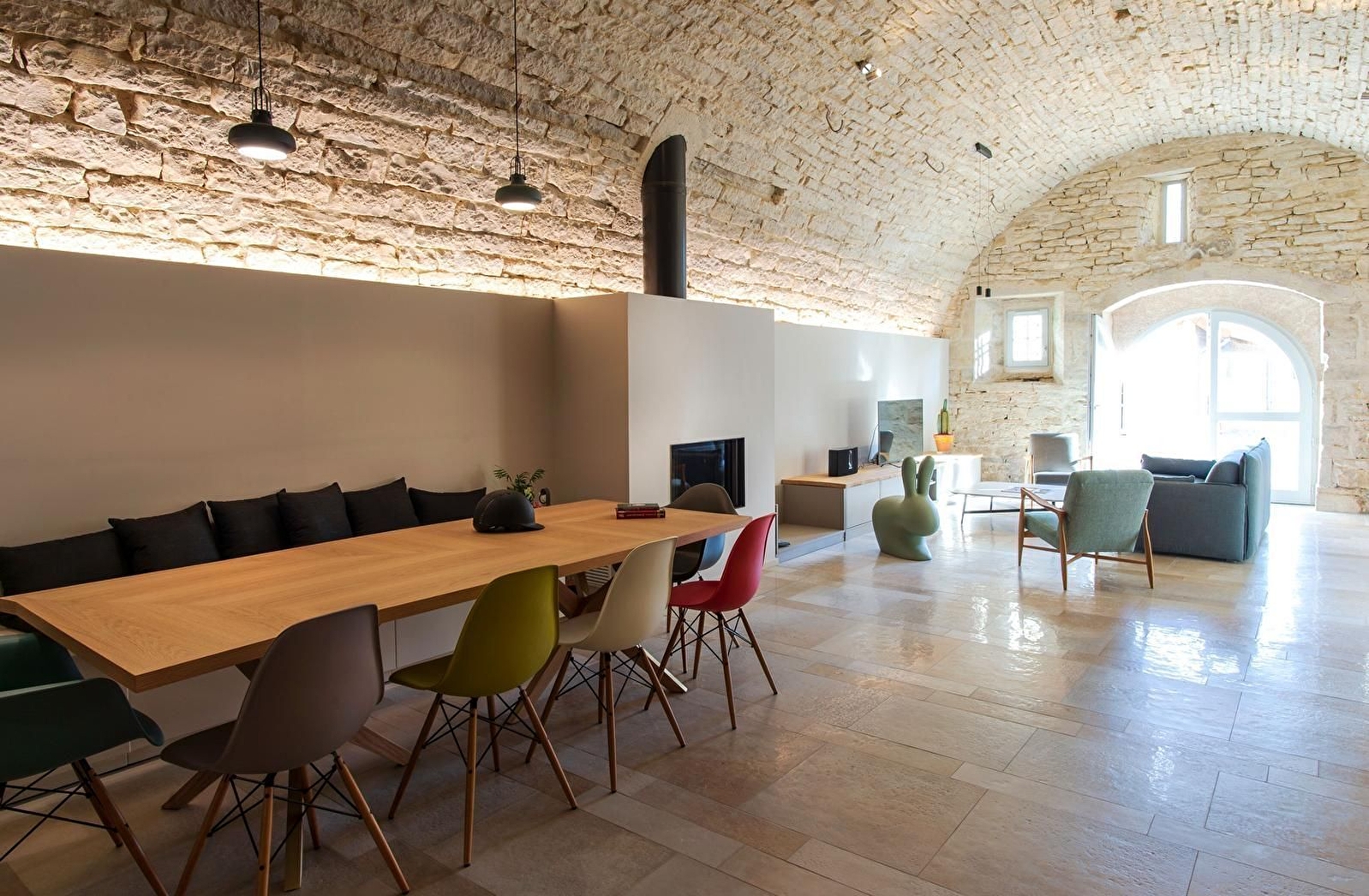 Au rez-de-chaussée: magnifique salon (canapé lit convertible pour un couchage supplémentaire) avec espace cuisine en pierres apparentes et plafond voûté, cheminée, cave à vins. Le majestueux escalier en colimaçon, en pierres de taille, donne accès au premier étage: deuxième cuisine équipée, avec une cheminée d'époque et un subtil mariage de style scandinave, spacieux salon épuré, tout en luminosité. Au deuxième étage, 3 chambres: 2 chambres avec lits doubles, 1 chambre 3 personnes (1 lit double, 1 lit simple) avec salle d'eau privative. Une deuxième salle d'eau.