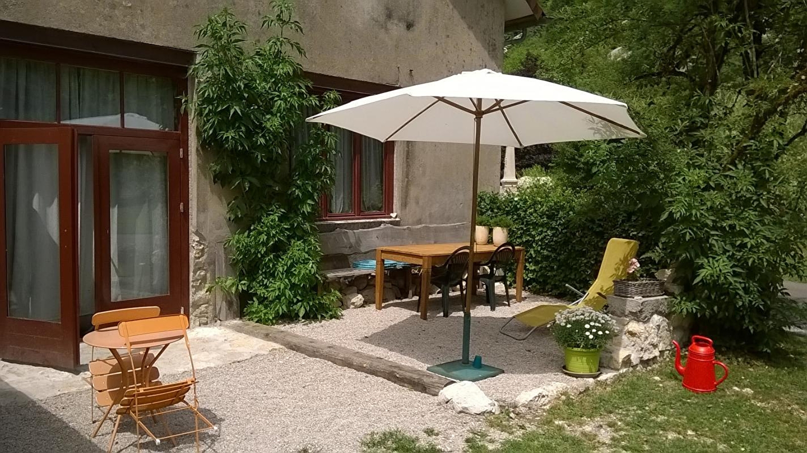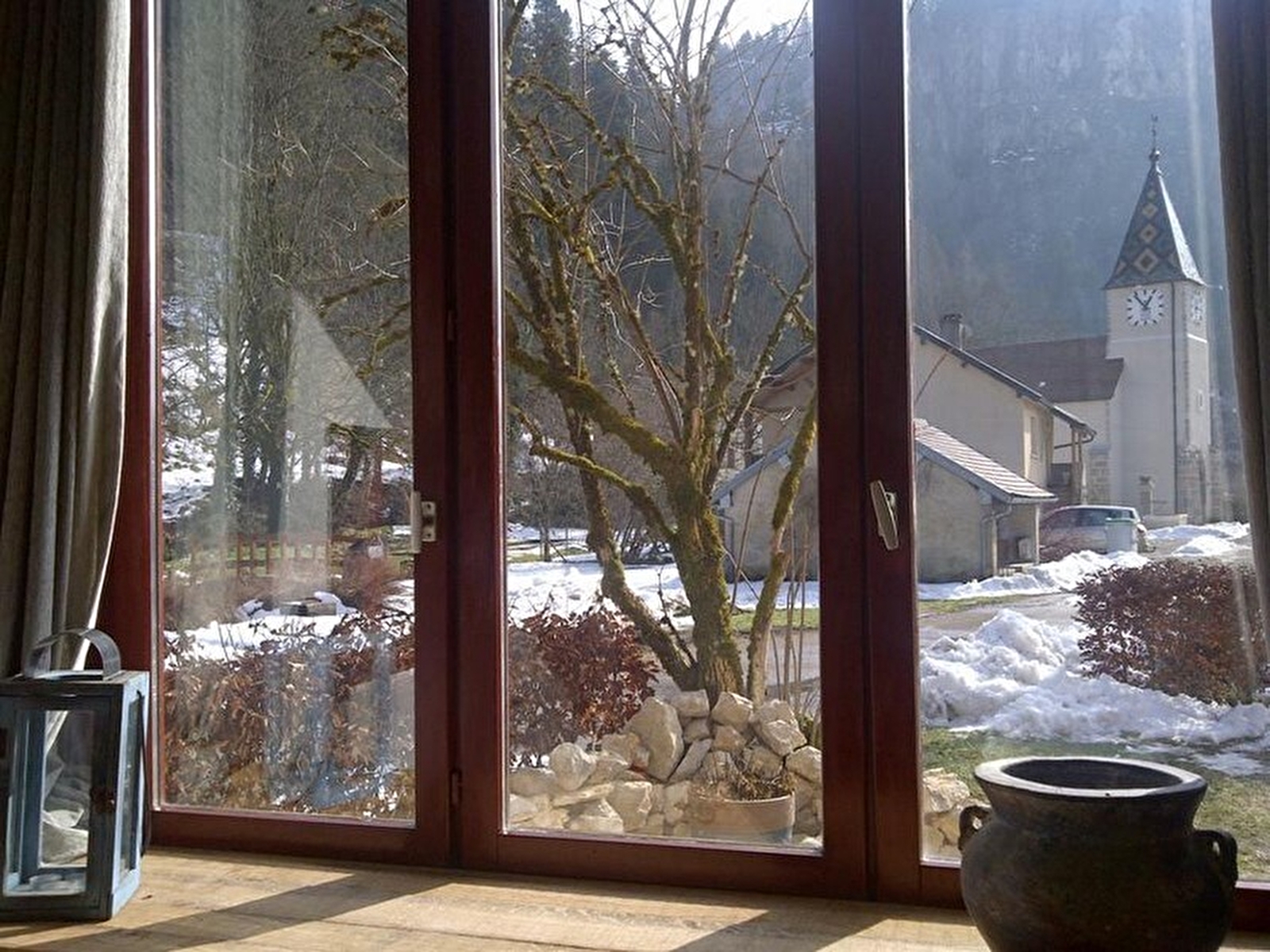 Au coeur de la région des Lacs et aux portes du Parc Naturel Régional du Haut Jura, maison mitoyenne avec les propriétaires, entièrement rénovée en conservant l'authenticité de cette ancienne grange. Le forfait ménage en fin de séjour est inclus. Les draps de lit et le linge de toilette sont fournis. Au RDC : hall d'entrée, pièce à vivre lumineuse composée d'une cuisine toute équipée et d'un confortable salon avec TV, lecteur DVD, poêle à bois (supplément bois 10€ par semaine). Accès à la terrasse offrant une vue imprenable sur la Reculée et la nature environnante. Un salon de jardin et barbecue sont installés à la belle saison afin de profiter au mieux de ce lieu magique. A l'étage (desservi par un escalier raide type échelle de meunier): CH1 : 1 lit 2 pl, CH2: 2 lits 1 pl. Salle d'eau avec grande douche à l'italienne. Lit bébé et barrière à disposition sur demande. Terrain attenant non clos. Le 1er animal est gratuit et pour les suivants 4€/animal/jour.