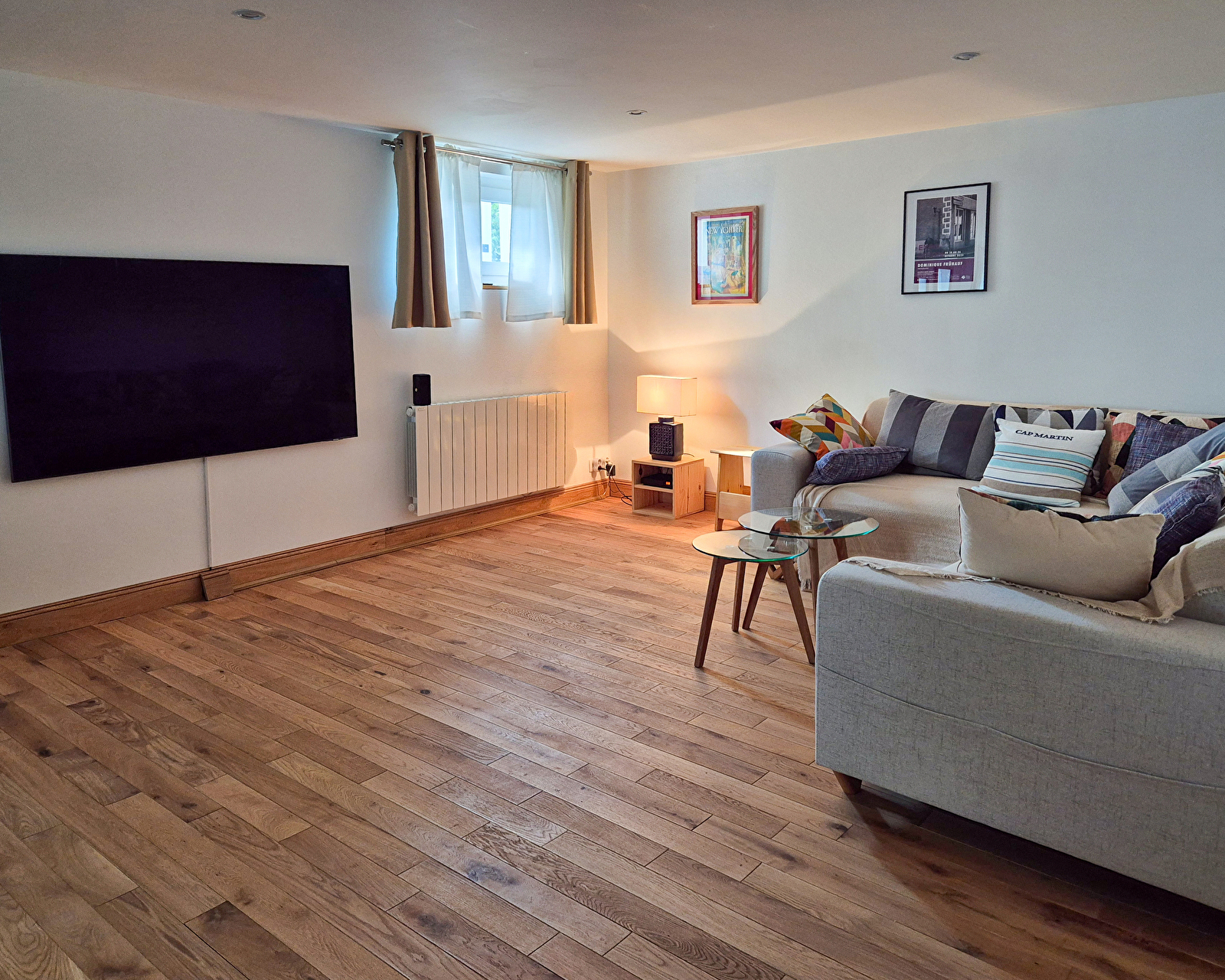 Logement comprenant deux pièces principales et une salle de bains, au calme dans résidence entourée de verdure, à proximité de la voie verte, et à proximité des commerces et attractions touristiques.