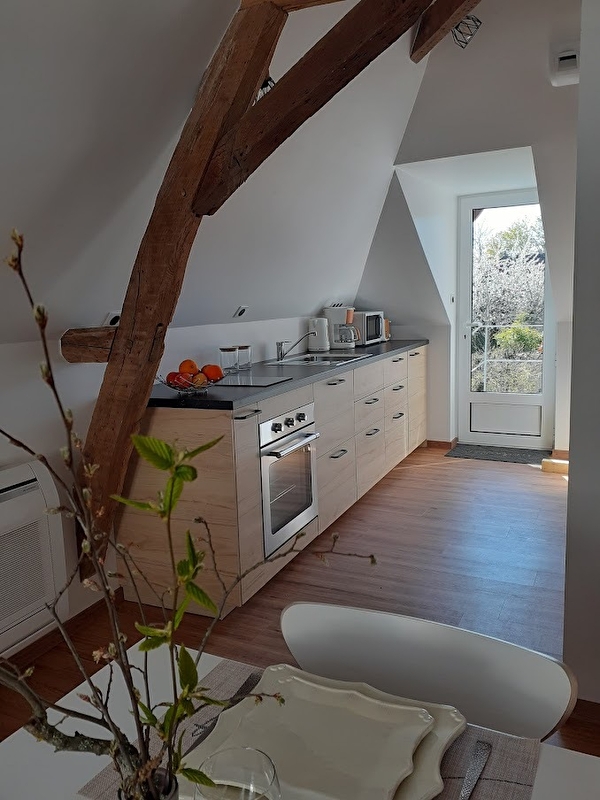 Savourez le calme et la tranquillité dans cette propriété à deux pas des Thermes & des commerces. A l'étage, bel appartement de charme pour 2 à 4 personnes, mansardé, climatisé, crée en 2020, où se mêlent le bois, la pierre et le fer pour une ambiance cosy et chaleureuse. Retrouvez tout le confort dans ce petit nid douillet! Terrasse et jardin arboré seront propices à la détente. Et pour les sportifs : à proximité golf, tennis, piscine municipale, équitation, vélo, VTT, canoë, pêche...