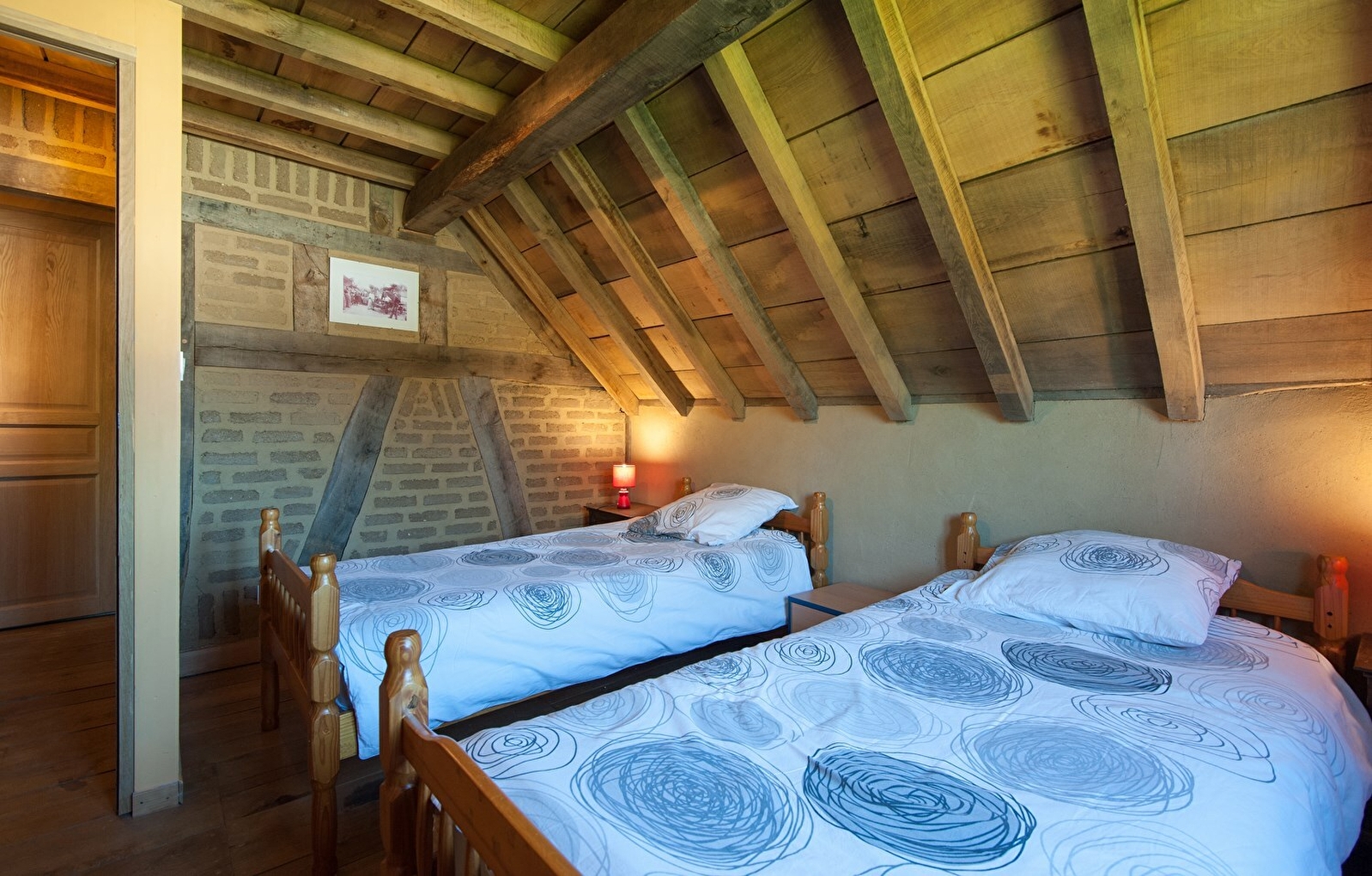 Composition : Maison comprenant 2 gîtes (indépendance totale) jouxtant l'habitation des propriétaires et 1 autre gîte (bâtiment bien séparé et espacé). Wifi. Cheminée + chauffage électrique. Rdc : séjour-cuisine-salon, Wc indépendant. 1er étage : 2 chambres (lit 2 p. 140x190cm + lit 1 p. 90x190cm / 2 lits 1 p. 90x190cm), salle d'eau (douche), Wc indépendant. Terrasse + parking privés. Jardin commun aux 2 gîtes. Local vélos + grand terrain en commun. Supermarché 7 km.