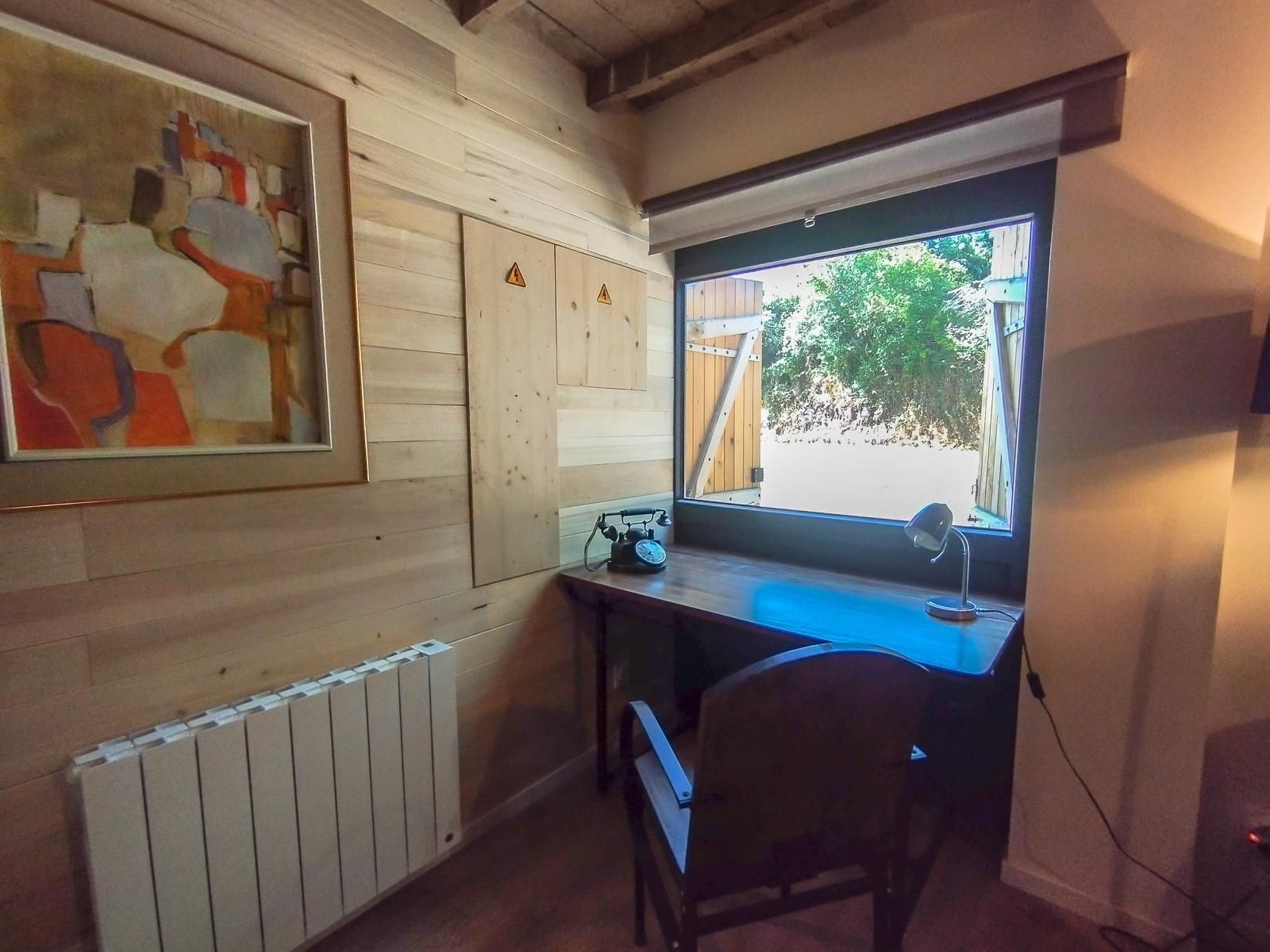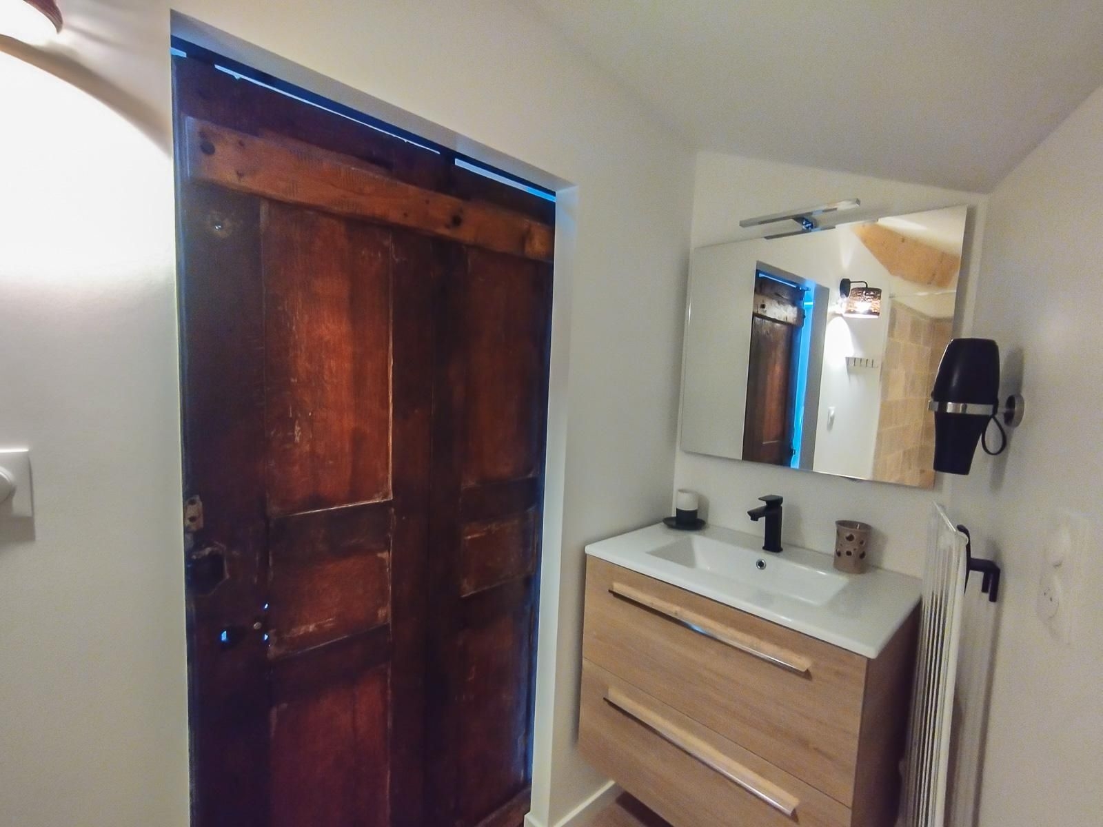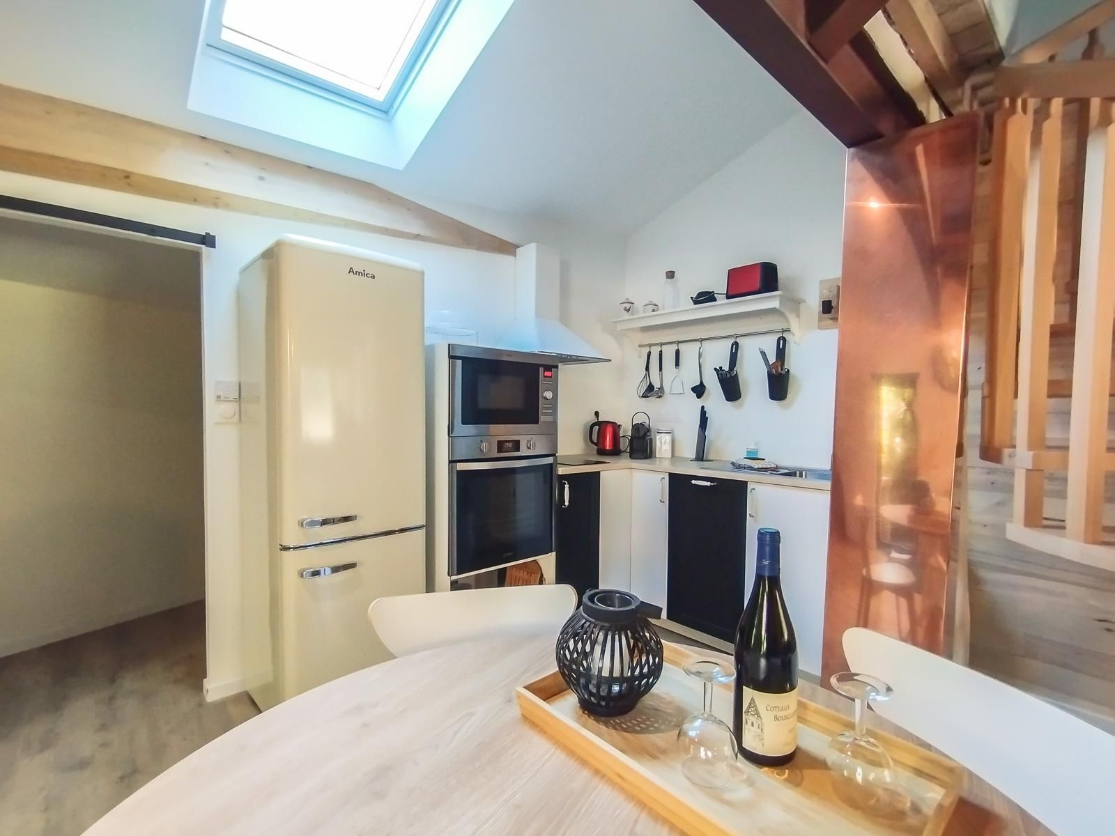 Le Logis "VIGNE" est une petite maison avec jardin, alliant authenticité et confort, aménagée sur deux niveaux. Un vrai petit nid douillet pour un couple ou un séjour solo. En RDC, pièce de vie de 30m2 avec cuisine équipée ouverte sur le salon en cuir. TV écran plat, poêle à bois (bois fournis) et espace bureau. Cette pièce offre un accès direct au jardinet intime clos, doté de mobilier de jardin avec barbecue et protégé du soleil par une pergola en bois. Salle d’eau moderne avec douche à l’italienne et WC. Accès à l’espace nuit par un bel escalier en bois en colimaçon, lit 180x200cm et seconde TV écran plat. Petit garage à disposition.