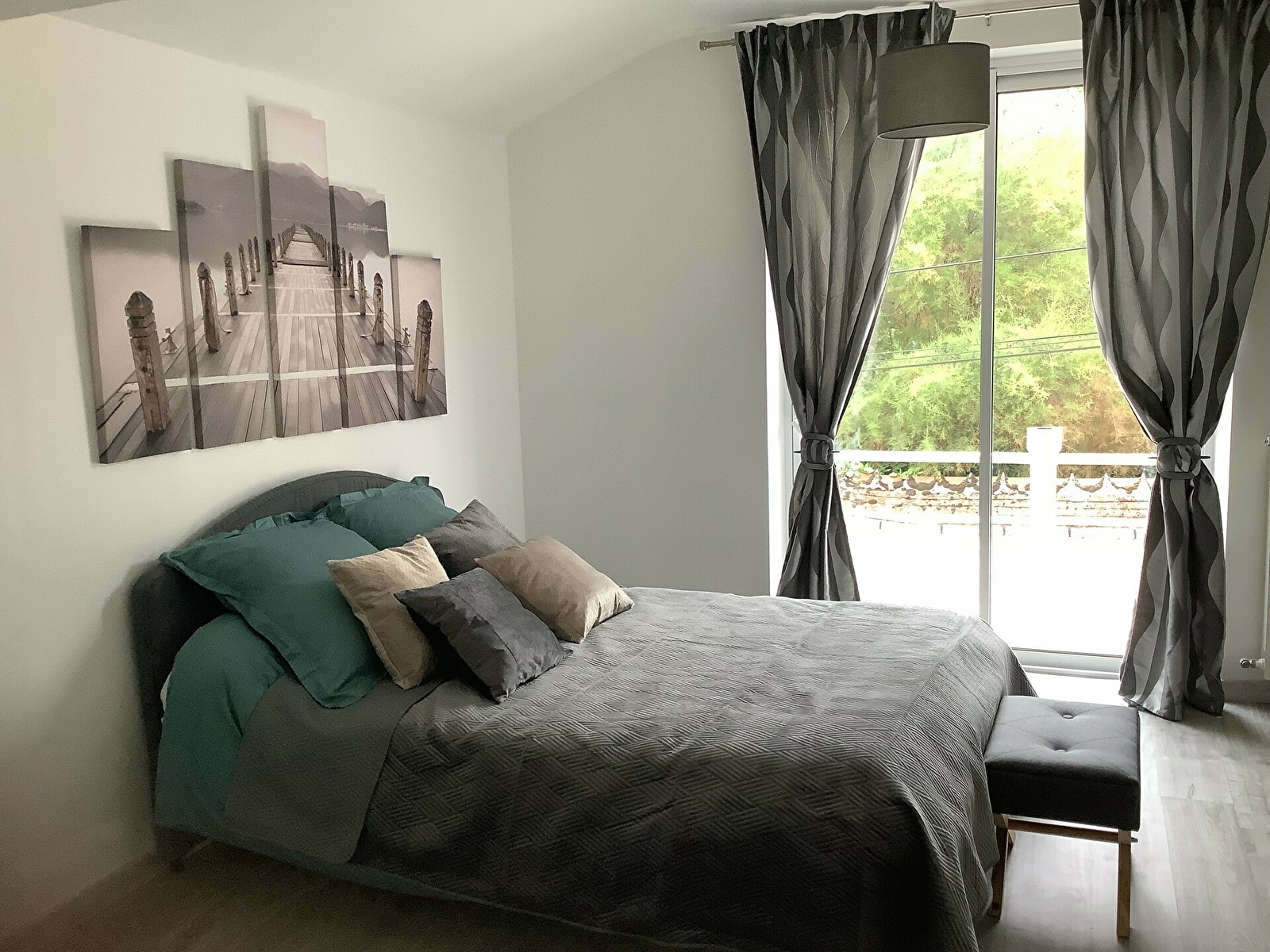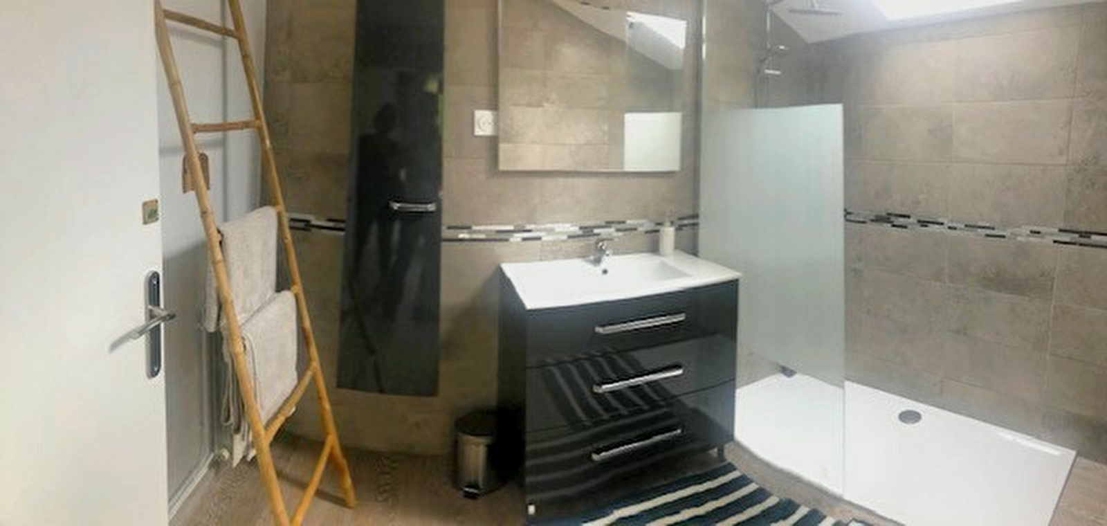 - A l’étage : d'une grande chambre avec balcon, un lit (2 places), une salle de bain équipée d'une grande douche à l'italienne.