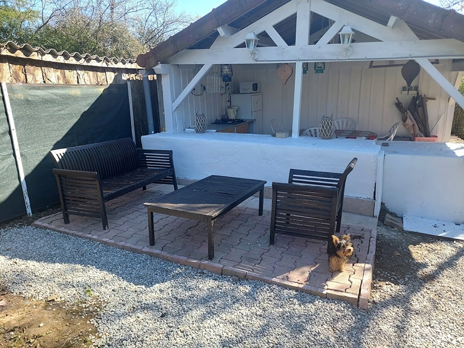 Cuisine d'été équipé d un frigo-congel, plaque gaz, micro-onde.