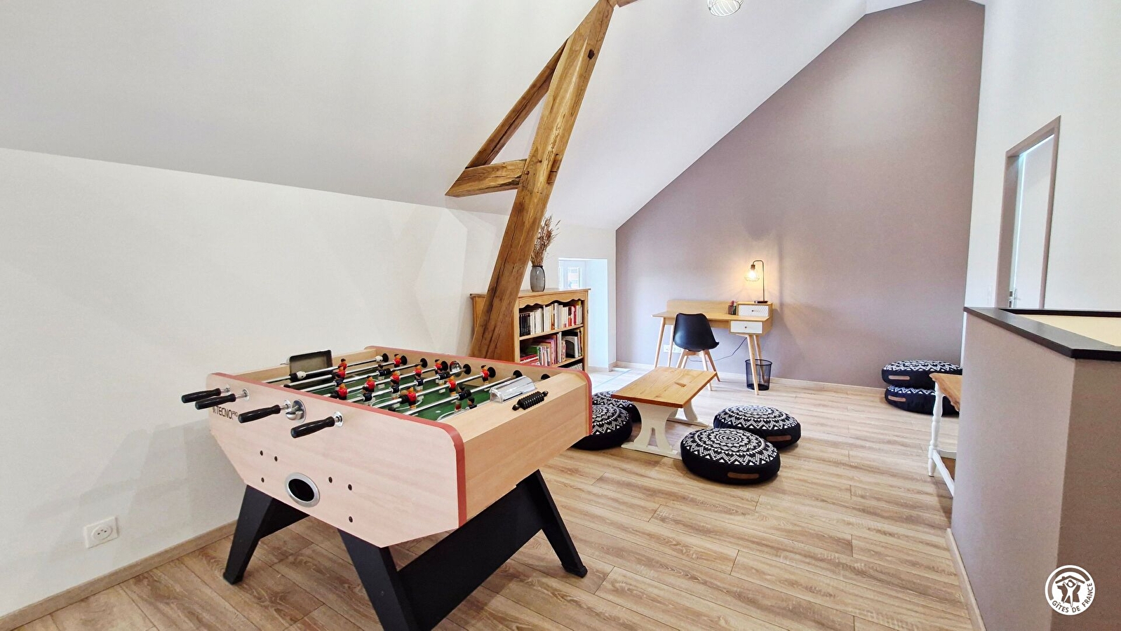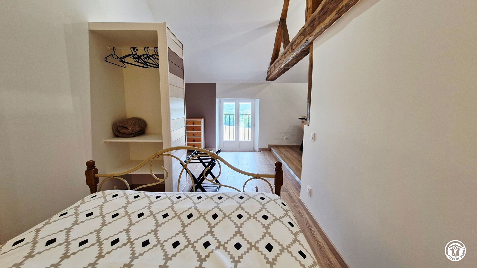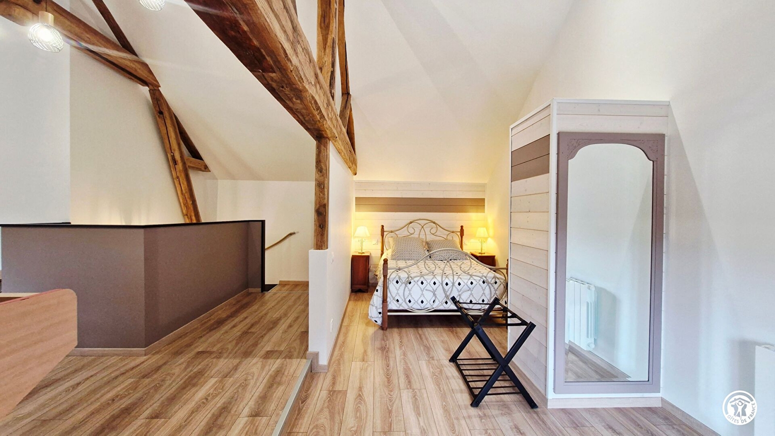 A l’étage, se situe la seconde chambre équipée d’un lit de 140 x 190, une salle-de-bains avec