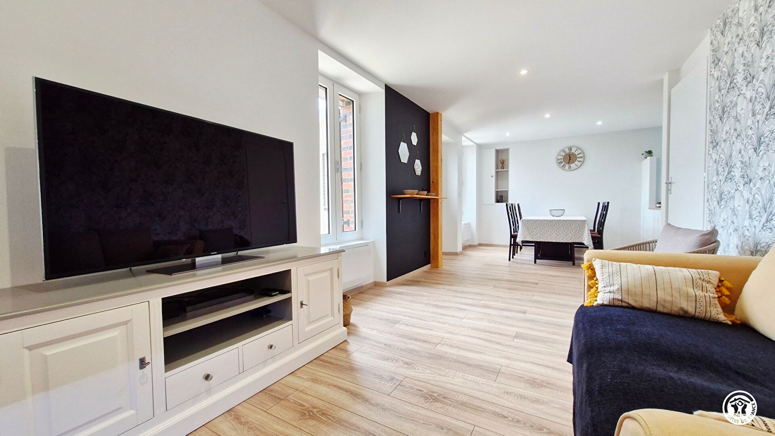 puis accéderez à la grande pièce de vie comprenant la cuisine, le séjour et le salon (avec télévision