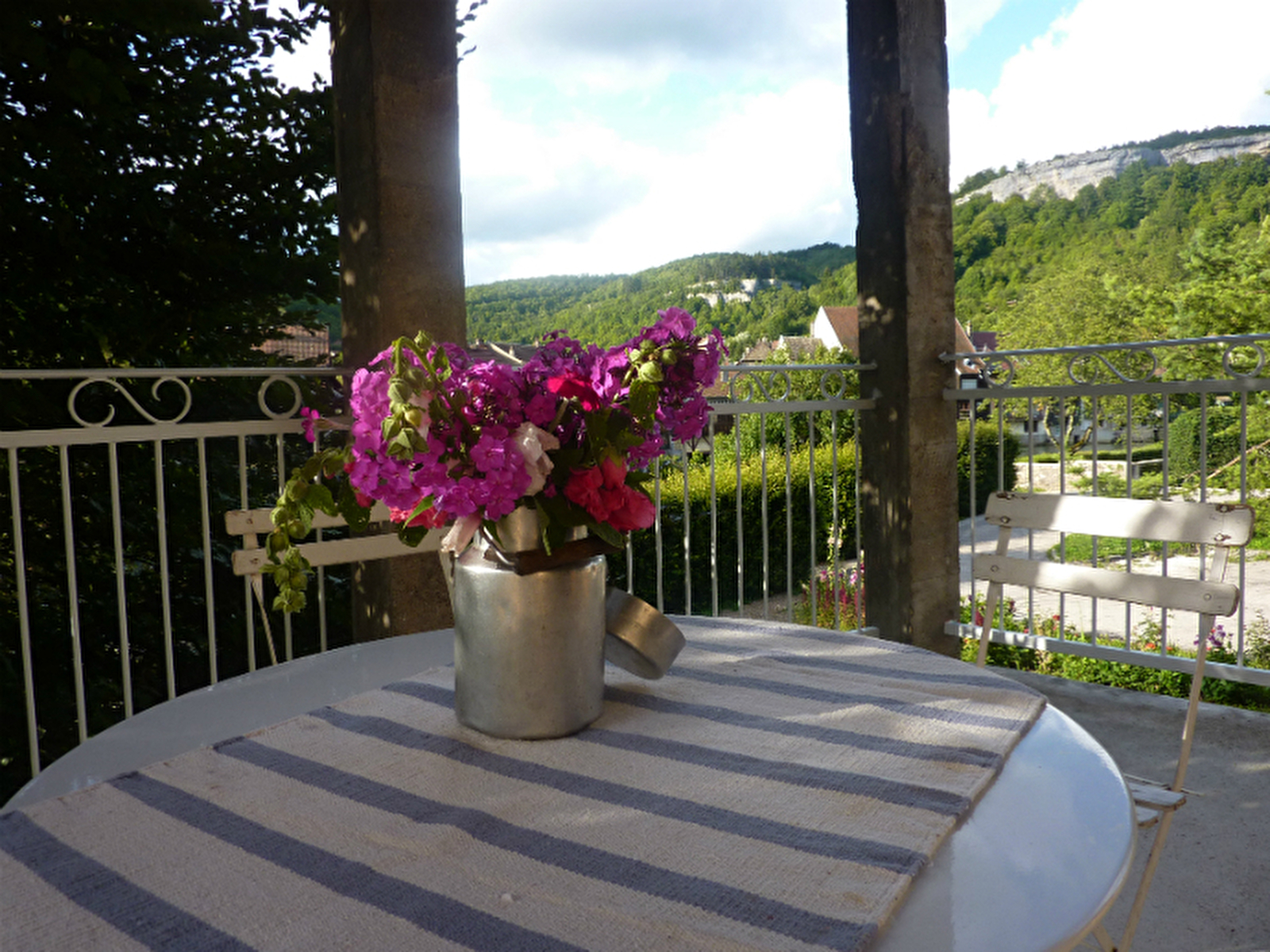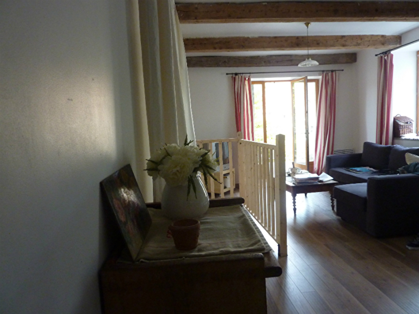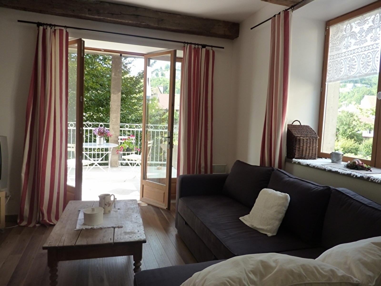 Belle demeure du XIVème siècle, sur terrain privé arboré en bordure de rivière et comprenant 2 gîtes bien indépendants. Il se compose d'une cuisine-salon ouvrant sur balcon / terrasse avec belle vue sur la rivière de la Loue, d'une salle de douche et WC, une chambre avec 2 lits simples et une deuxième chambre avec un lit simple.