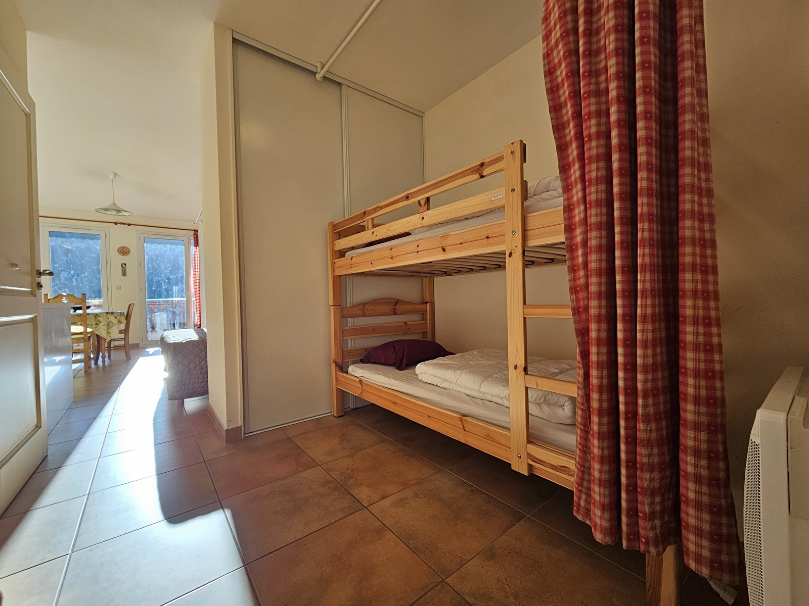 Situé dans la résidence "L’Abbaye", l'appartement de 39m² au rez-de-chaussée est composé d'une entrée avec lits supperposés (90cm), d'une cuisine ouverte sur séjour avec un canapé clic-clac, et d’un coin nuit avec un lit en 140 fermé par un rideau et d'une salle d'eau.