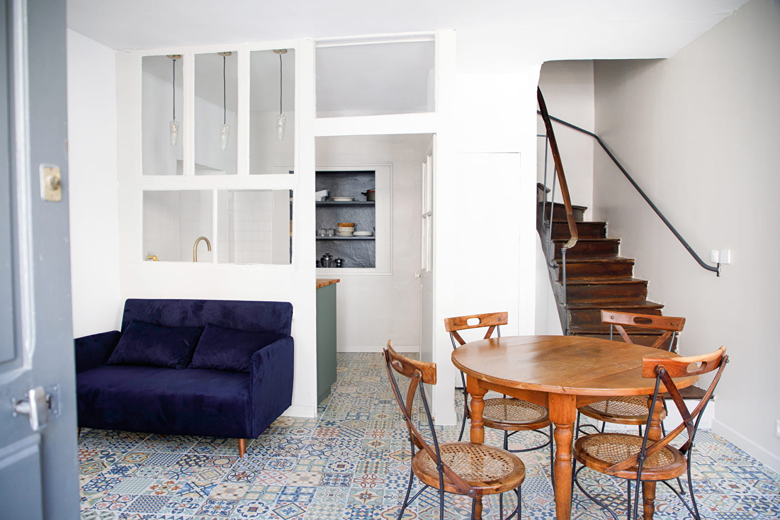 au RDC entrée, wc et une cuisine équipée, un salon cosy et un espace salle à manger