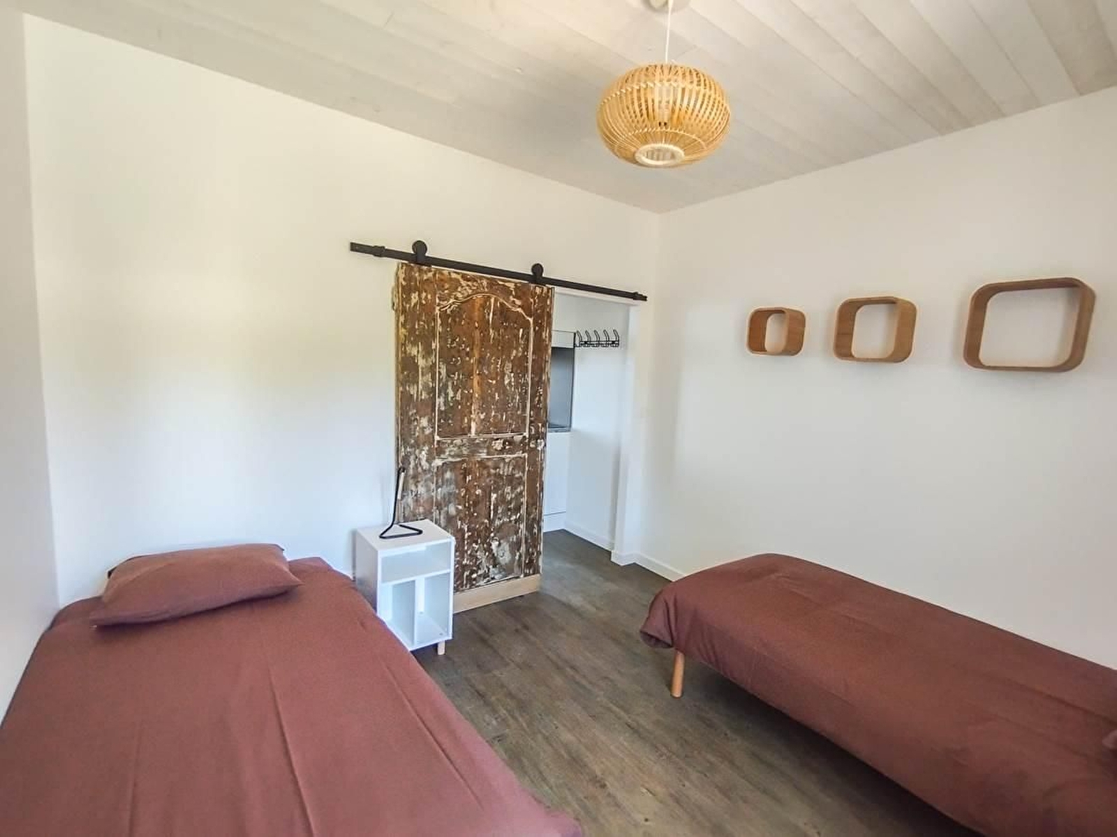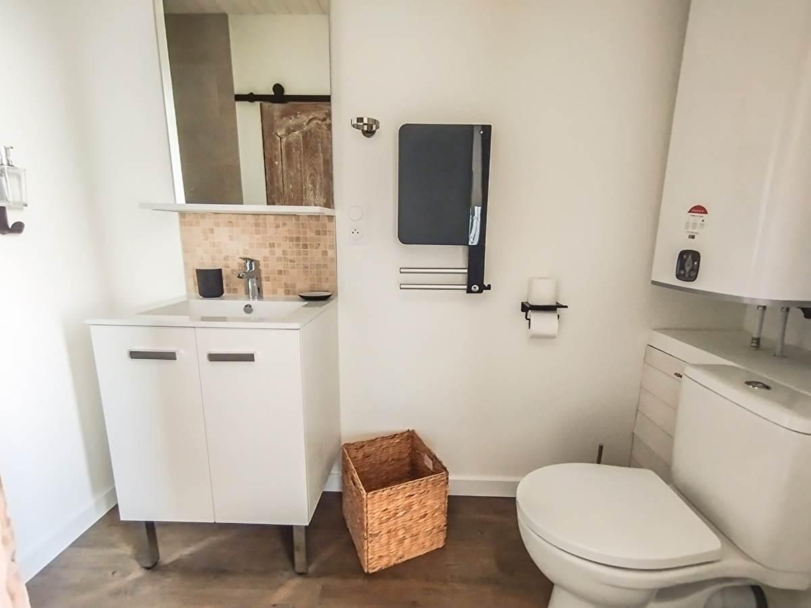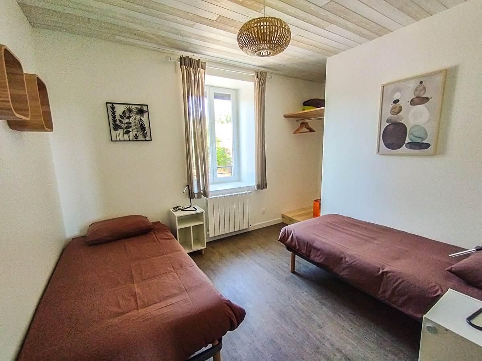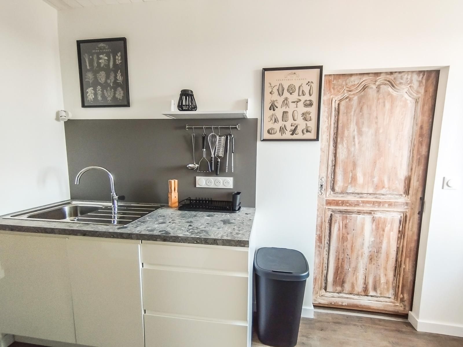 Couleurs douces. Pièce de vie lumineuse de 32m2 avec vue sur la campagne et cuisine parfaitement équipée ouverte sur le séjour. Salon avec TV écran plat. Deux chambres : chambre parentale avec lit double et bureau, 2ème chambre avec 2 lits individuels. Jolie salle d’eau avec douche balnéothérapie et WC. Le Logis est au 1er étage mais avec un accès au jardin partagé (tables en bois, hamac et barbecue) pour profiter des douces soirées d’été. Local sécurisé pour vélos et poussettes.