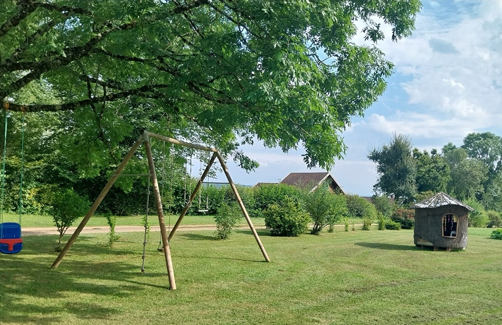 Situé à Pont du Navoy, dans le Jura, il est à 5 mn à pied des bords de l’Ain, 8 mn en voiture du lac de Chalain que vous pouvez éventuellement rejoindre via la voie verte, 15 mn de la région des Lacs et des cascades, 20 mn pour être au cœur des vignobles jurassiens et des stations thermales, 50 mn des stations de ski.