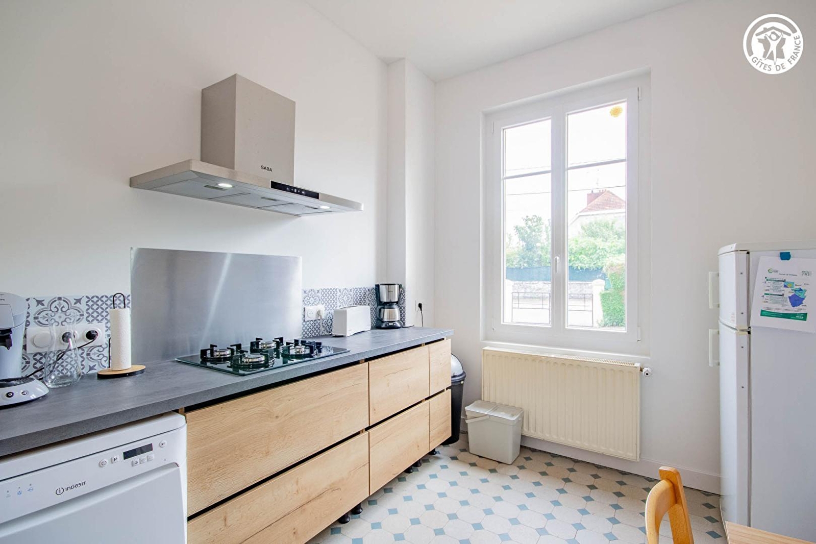 Composition : Maison individuelle. Wifi (fibre). Chauffage central gaz + poêle granulés bois. Rdc surélevé (2 marches) : cuisine, séjour-salon, salle d'eau (douche/Wc). 1er étage : 3 chambres (lit 2 p. 140x190cm / 2 lits 1 p. 90x190cm dont 1 surélevé / lit 2 p. 140x190cm). Jardin clos (600m²) + terrasse gravier + local vélos + parking privés. Toutes commodités dont supermarchés 3 km.
