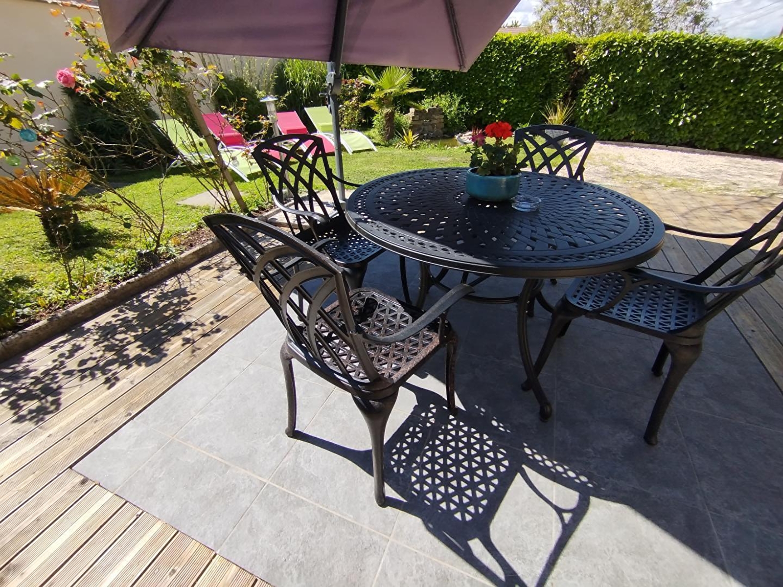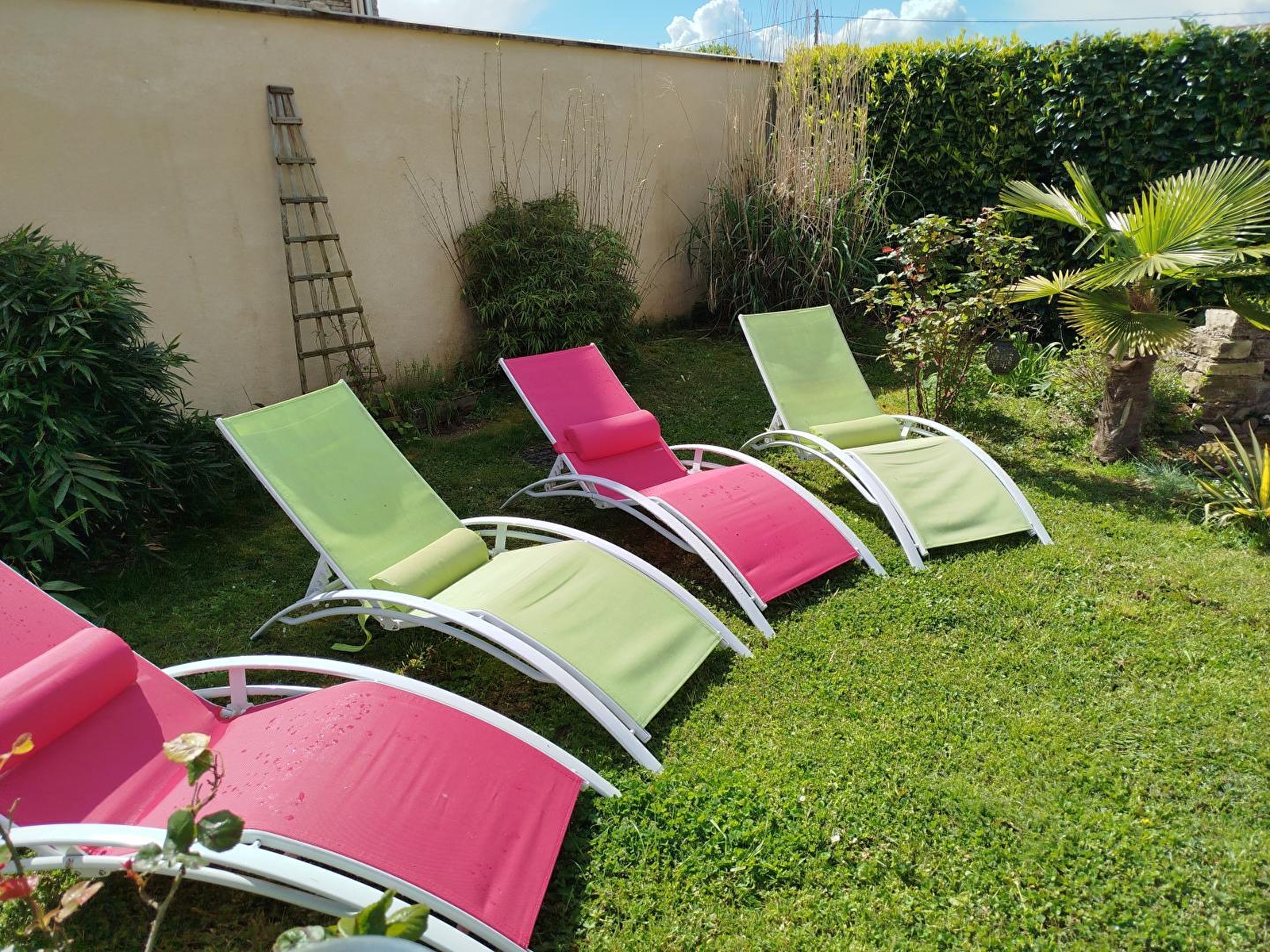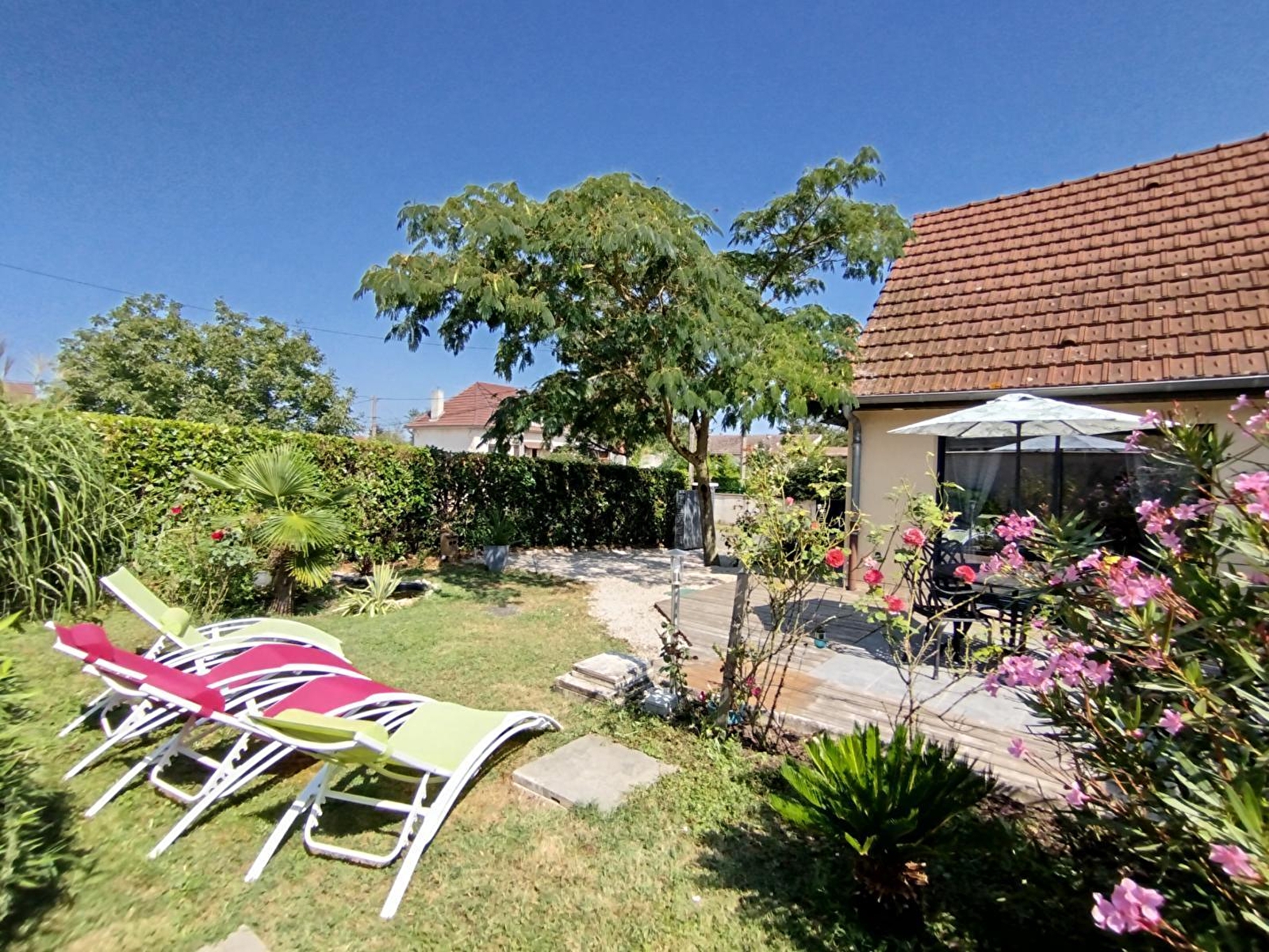 Nathalie & Mickaël vous accueillent au sein d’une ravissante maison contemporaine de caractère, bâtie & aménagée dans l’esprit d’un convivial "cottage" douillet, nichée aux confins d'un petit village résidentiel typique, en toute proximité des rives de la Saône, véritable paradis des kayakistes & pêcheurs, espace protégé en Zone Natura 2000 pour ses très rares écosystèmes (exceptionnelle réserve ornithologique riche de 160 espèces & de nombreuses variétés végétales rares, également réputé pour ses célèbres silures, sandres, carpes.…). En pleine douce campagne chalonnaise, apaisant écrin préservé mixant agriculture & pleine nature (en large partie classée en ZNIEFF pour ses richesses floristiques & faunistiques), blotti au creux d’une vaste plaine de prés, champs de cultures & prairies bocagères, parsemée de bucoliques étangs & rivières comme de belles forêts sauvages (à parcourir lors de relaxantes balades à pied ou vélo). Gîte de très bon confort. Chaleureux cachet campagnard aux accents contemporains. Beaucoup de charme. Coquettes chambres lovées sous les toits en mode "cocon cabane". Ambiance enveloppante, cocooning & cosy, dans une douce modernité. Agréable intimiste jardinet clos avec portail (lové à l'abri des regards), soigneusement végétalisé & fleuri, abritant un insolite mini bassin (sans danger) et une large terrasse tout à la fois exposée & naturellement ombragée sous un joli albizia (ayant logiquement inspiré le nom du gîte…).